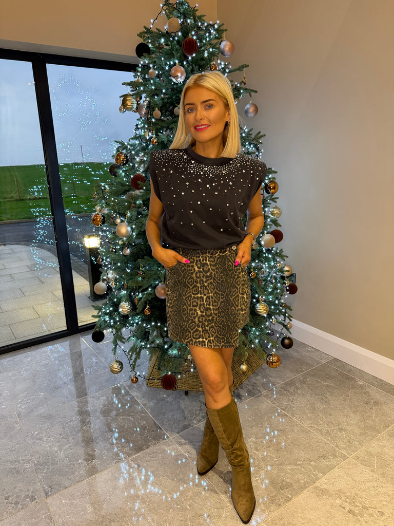 Sleeveless, round neckline, regular fit top. Diamond stud detailing. Available in more colour ways.