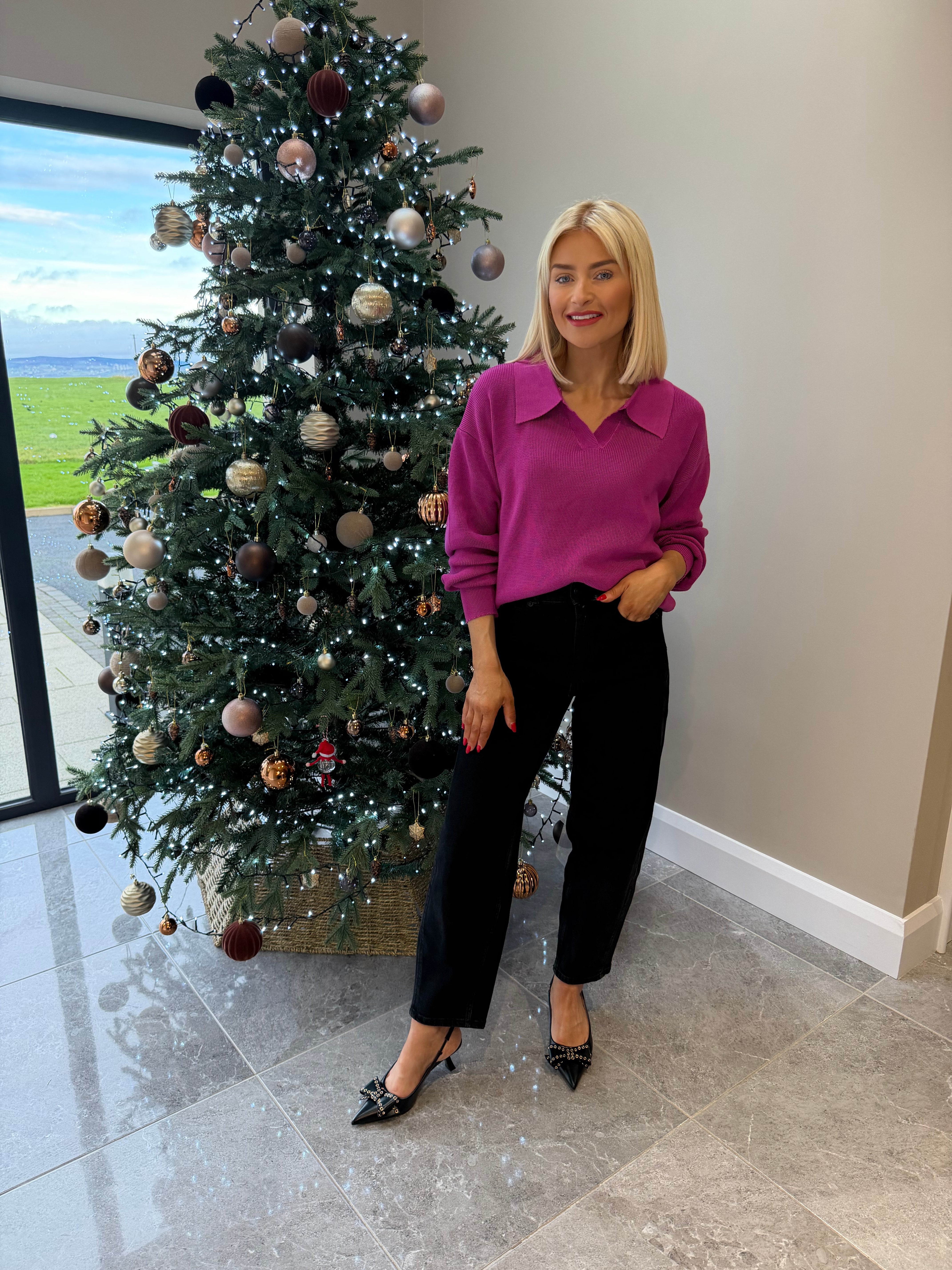 Long sleeve, v neckline, knit jumper. Available in more colours.