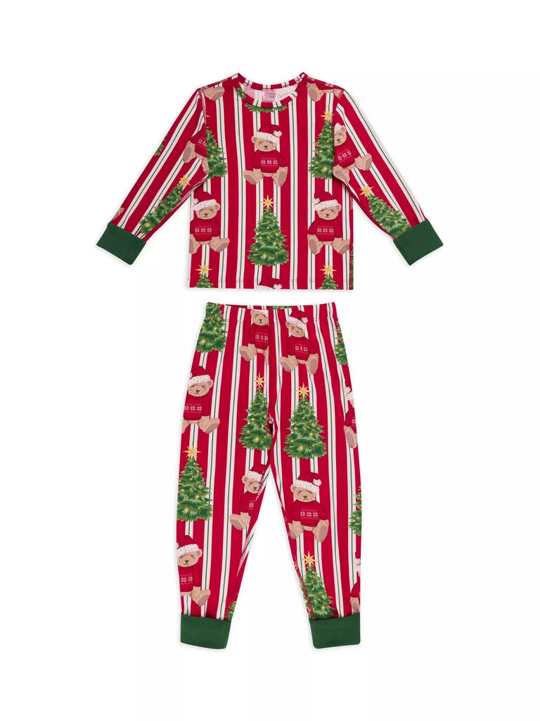 Chelsea Peers Kids-Christmas Stripe Teddy Pyjama Set