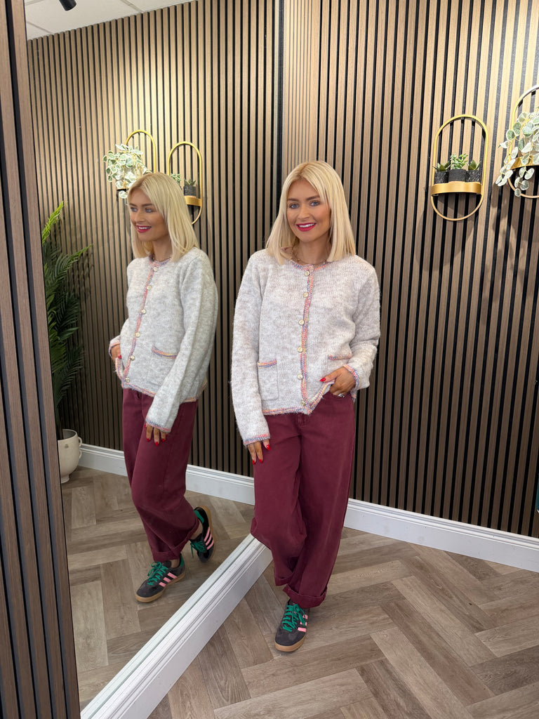 Gina Check Cardigan Beige/Pink/Brown PRE ORDER