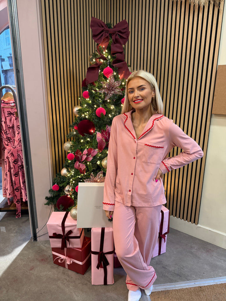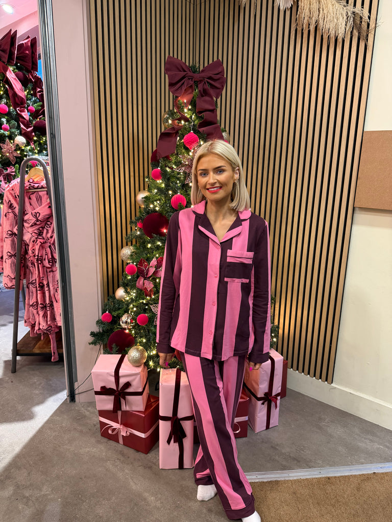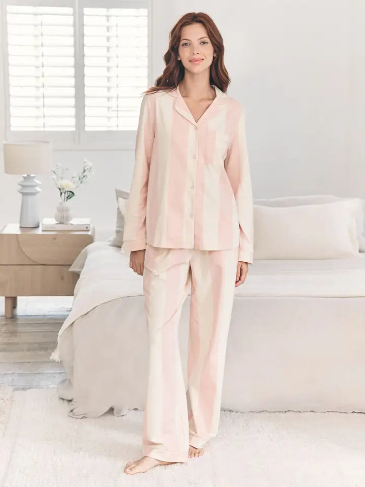 Chelsea Peers-Organic Cotton Stripe Long Pyjama Set - Dusky Pink