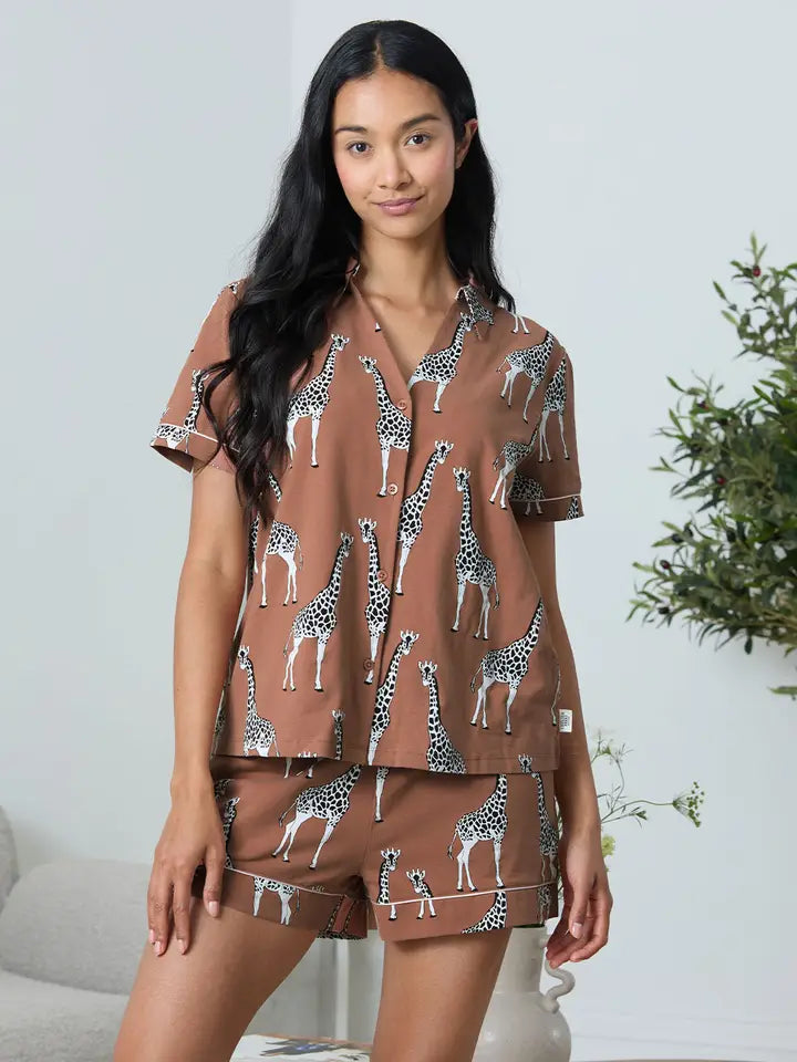 Chelsea Peers-Organic Cotton Giraffe Print Short Pyjama Set - Brown