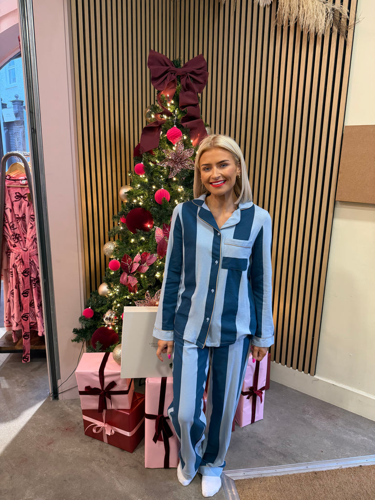 Chelsea Peers-Organic Cotton Stripe Long Pyjama Set - Blue