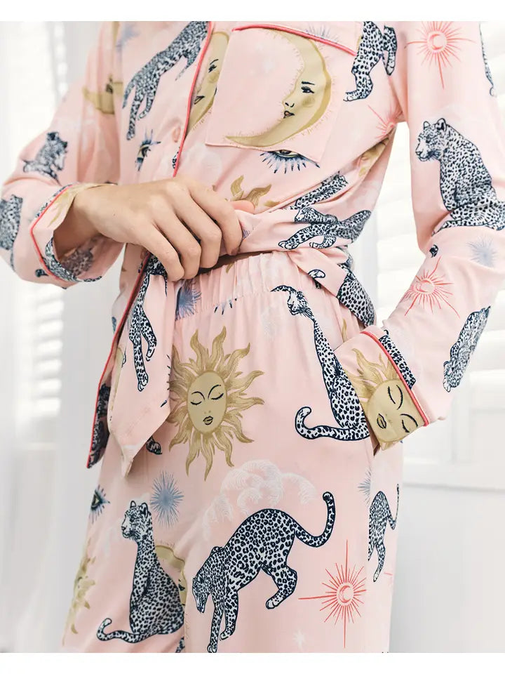 Chelsea Peers-Celestial Leopard Print Button Up Long Pyjama
