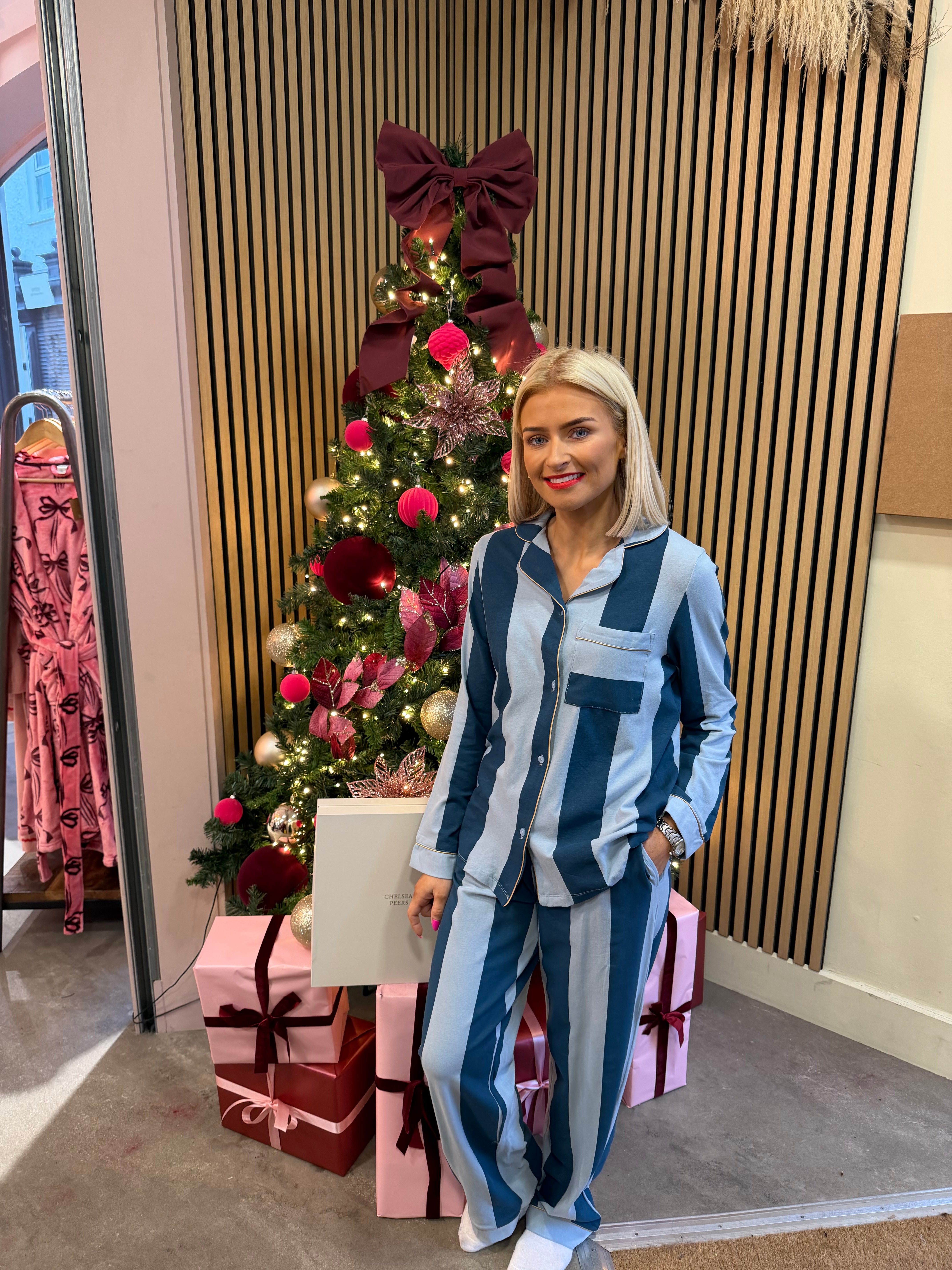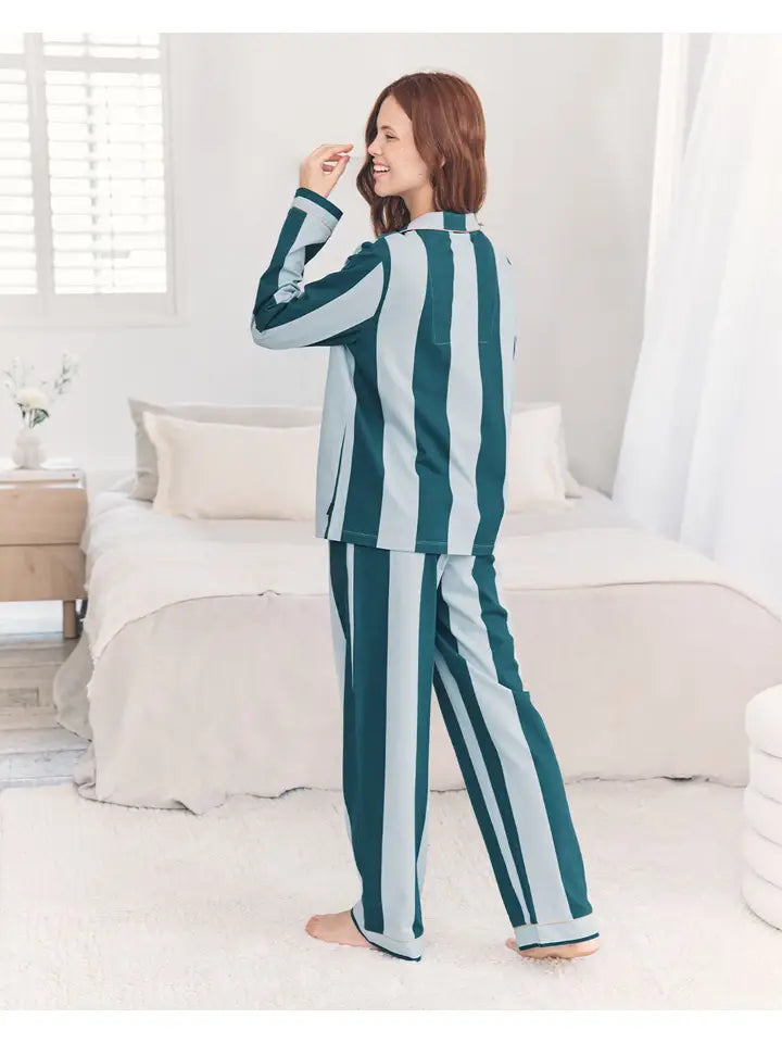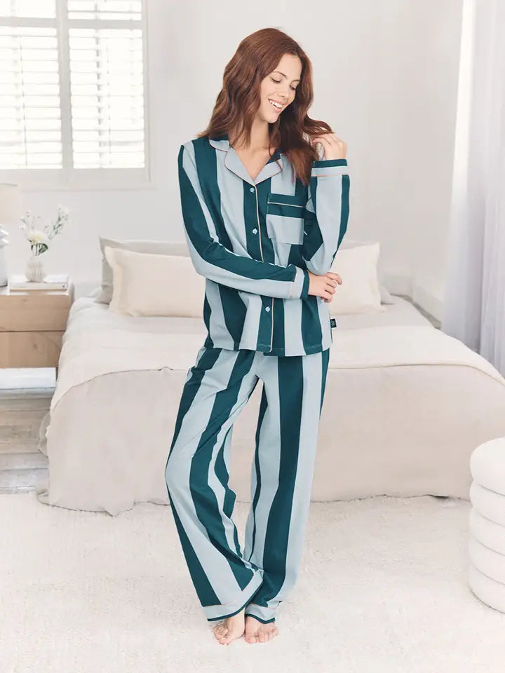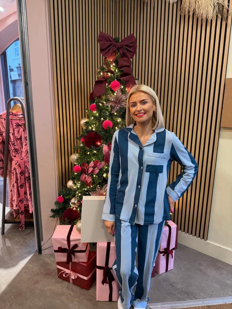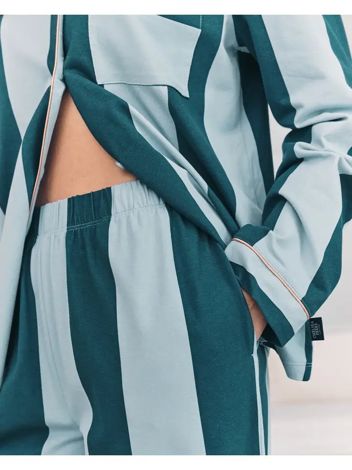 Chelsea Peers-Organic Cotton Stripe Long Pyjama Set - Blue