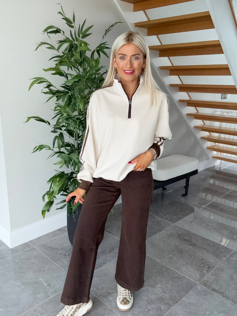 Charlie 1/4 Zip Sweatshirt Cream/Brown PRE ORDER
