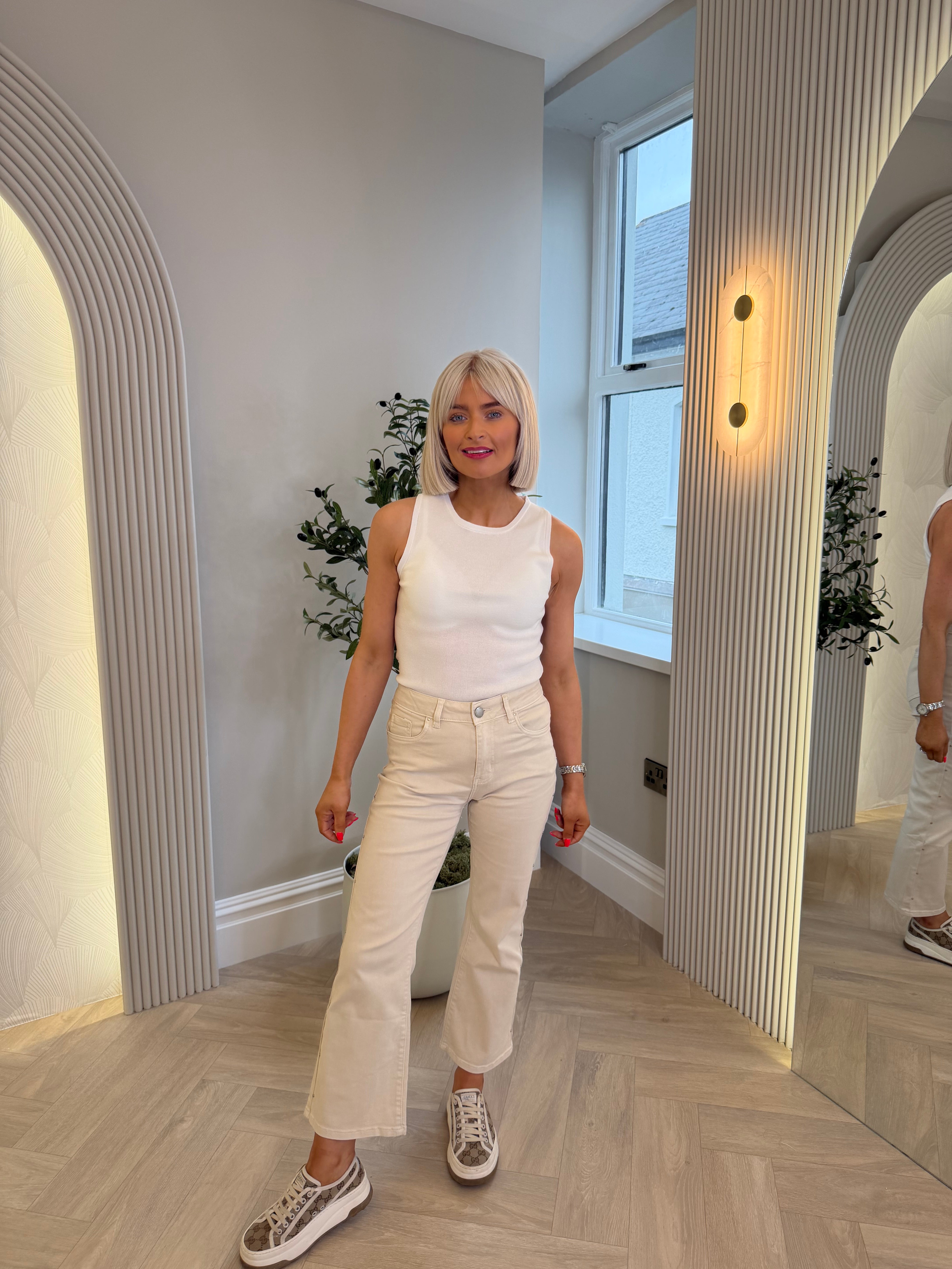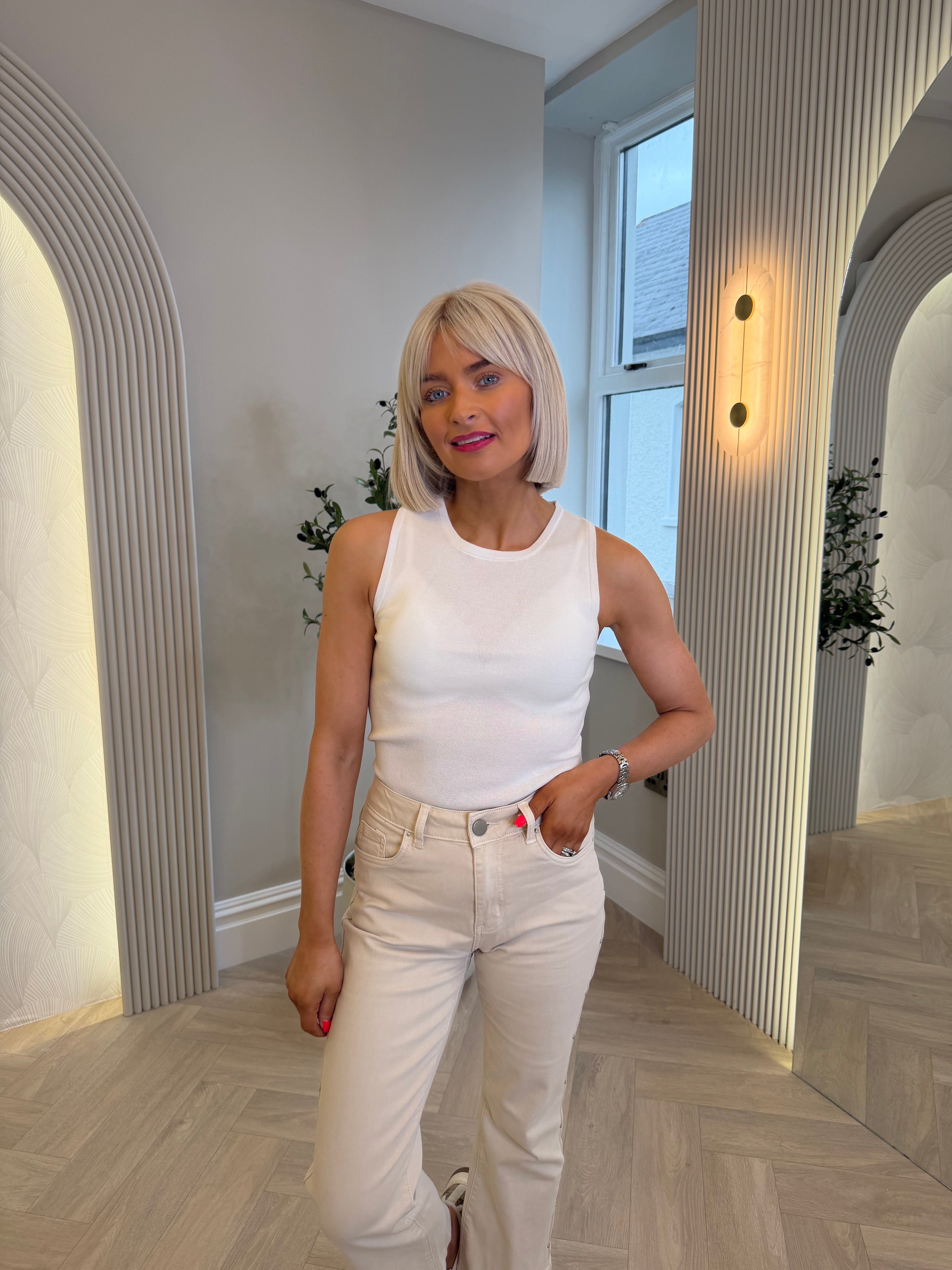 Adele Fine Knit Top White