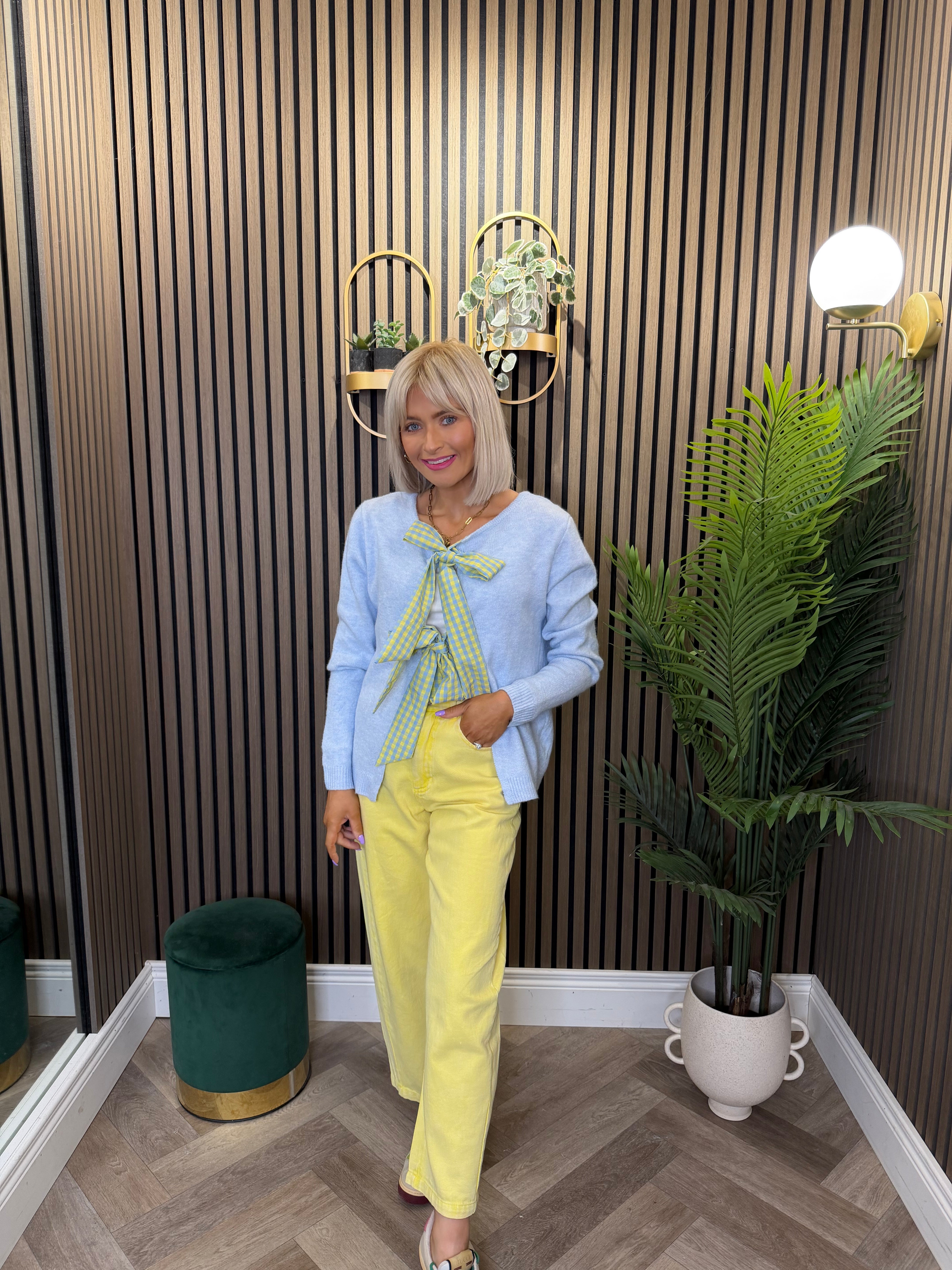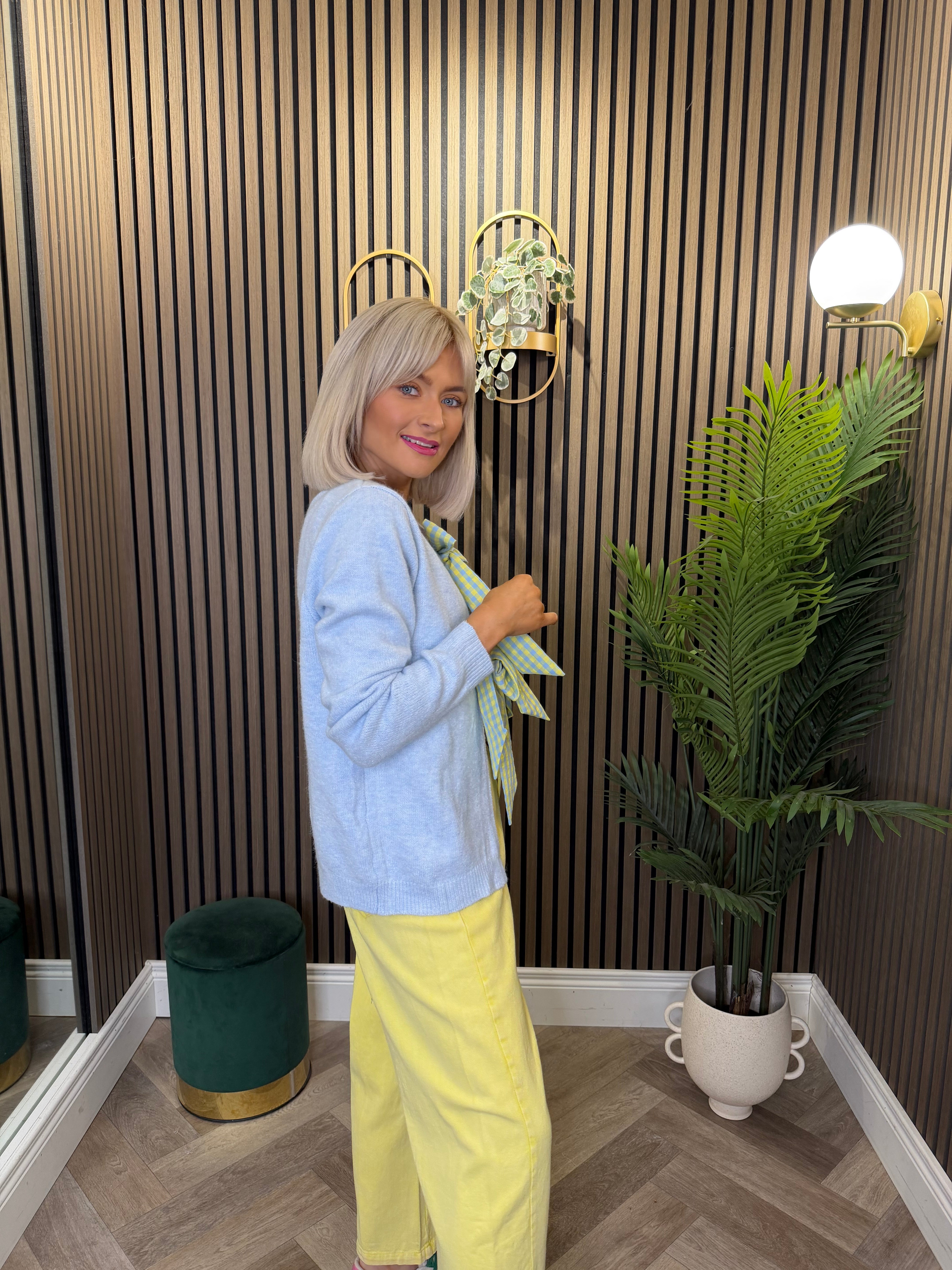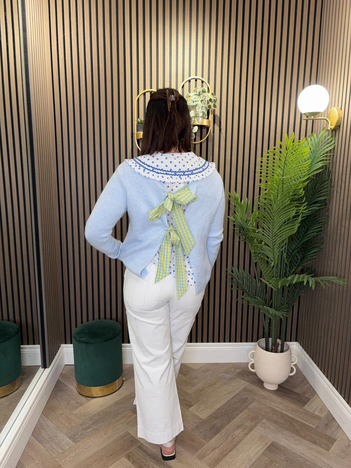 Long sleeve, knitted jumper. Open tie back detailing. Available in more colours.