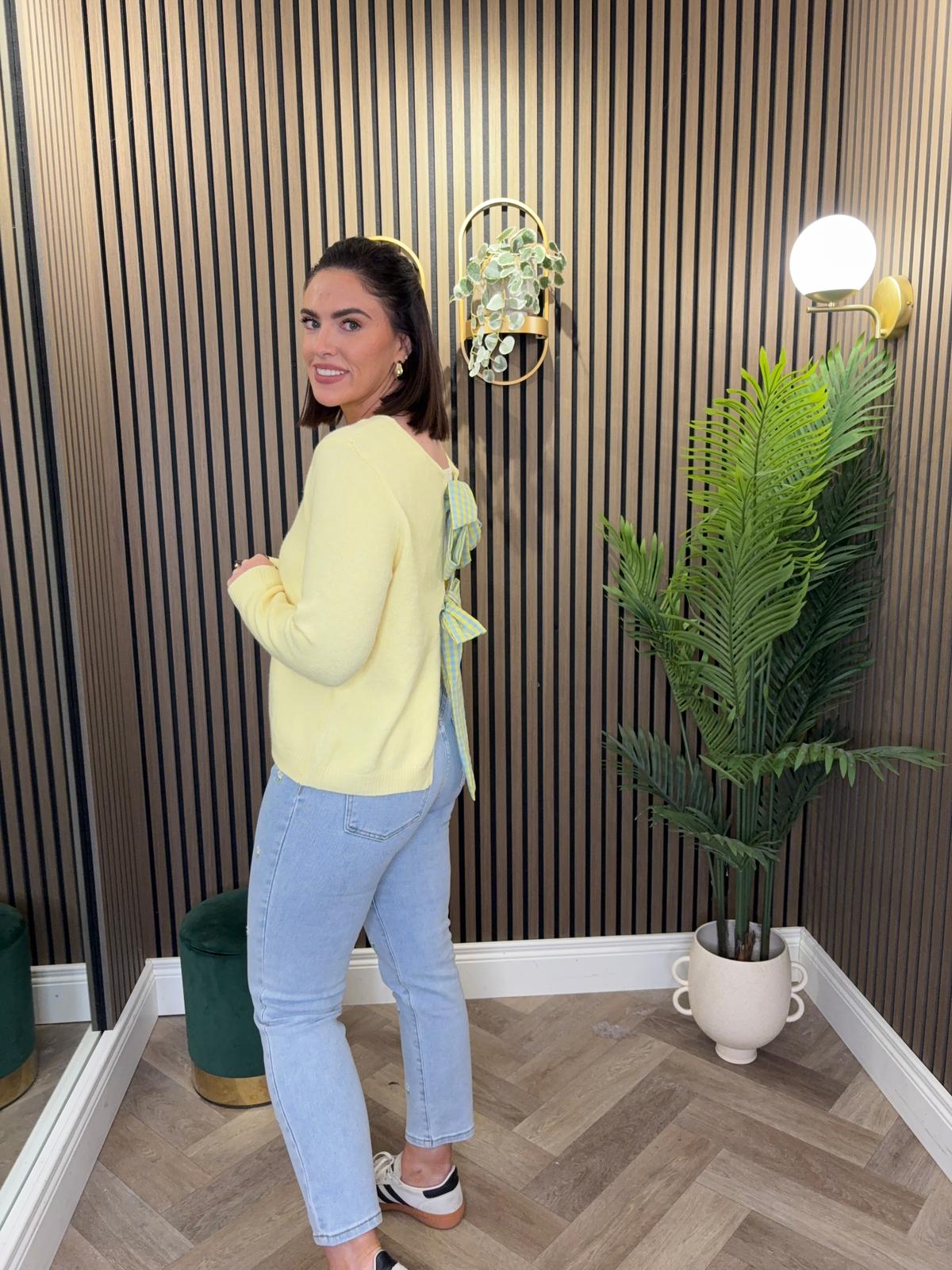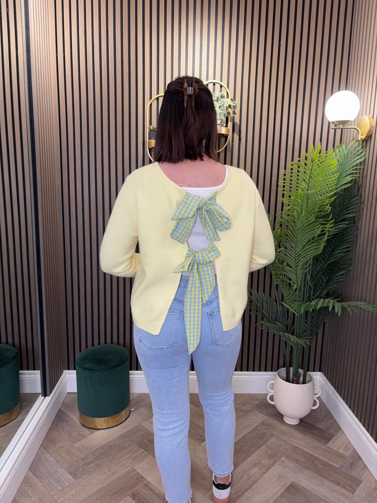 Long sleeve, knitted jumper. Open tie back detailing. Available in more colours.