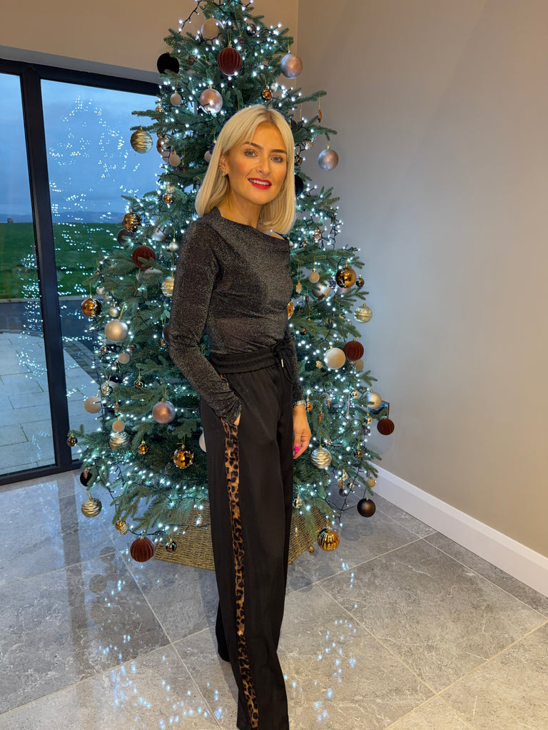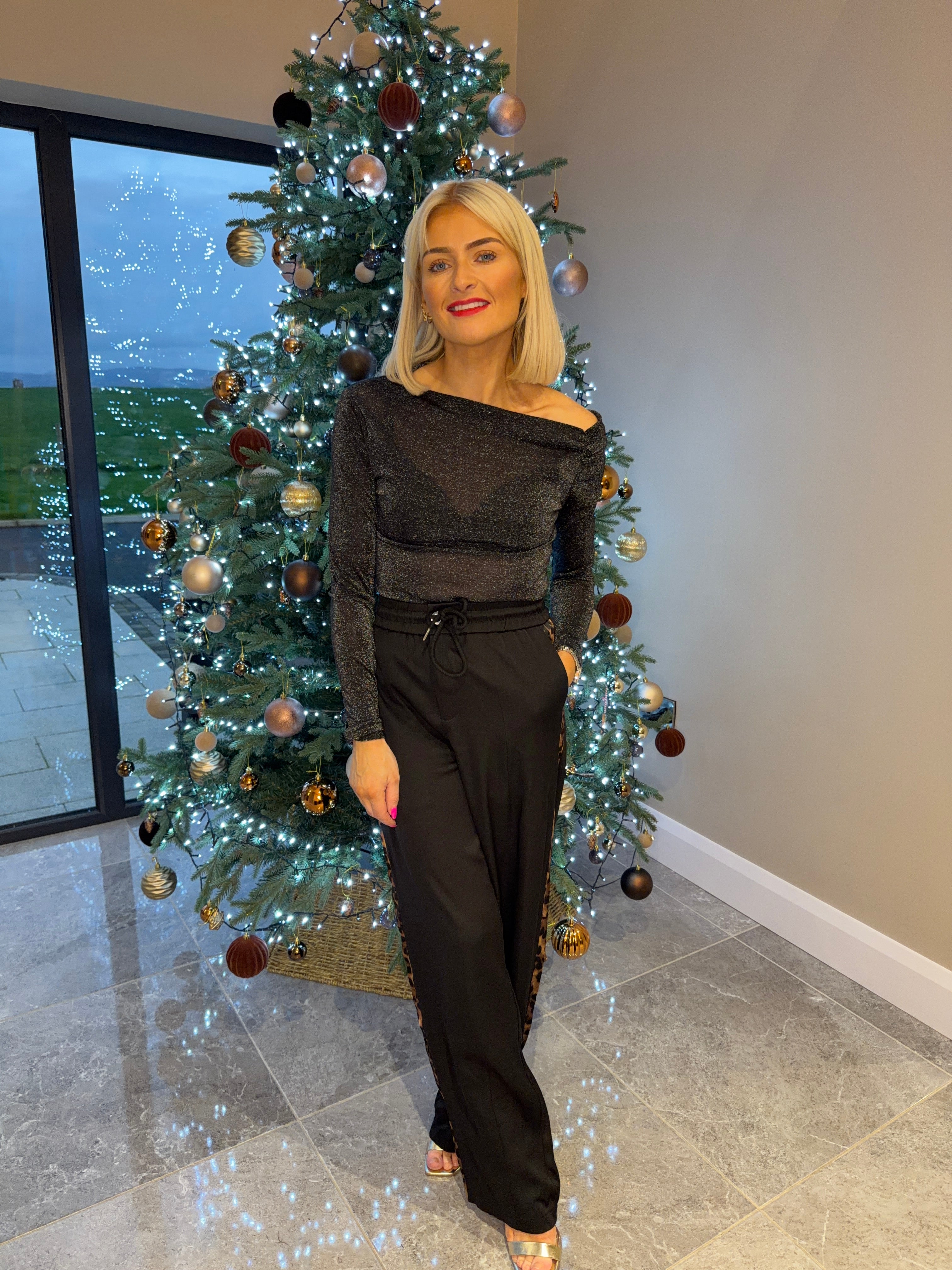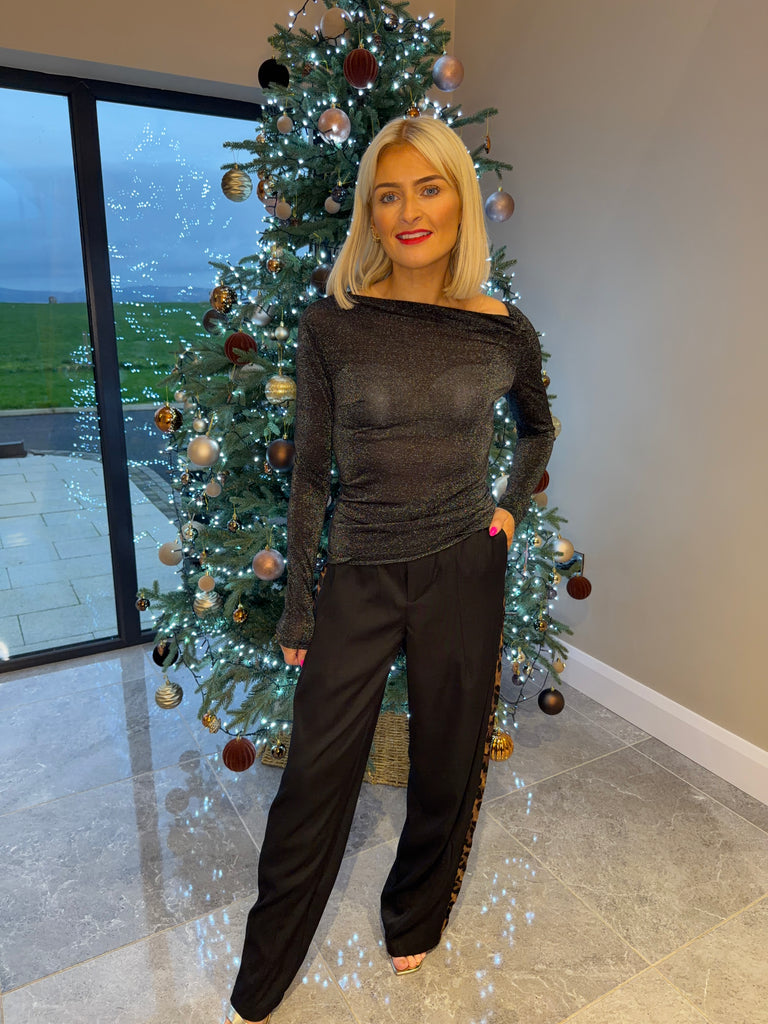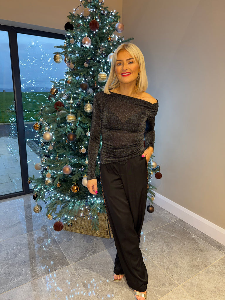 Asymmetrical style, sparkle style top. Long sleeve. Available in more colours.