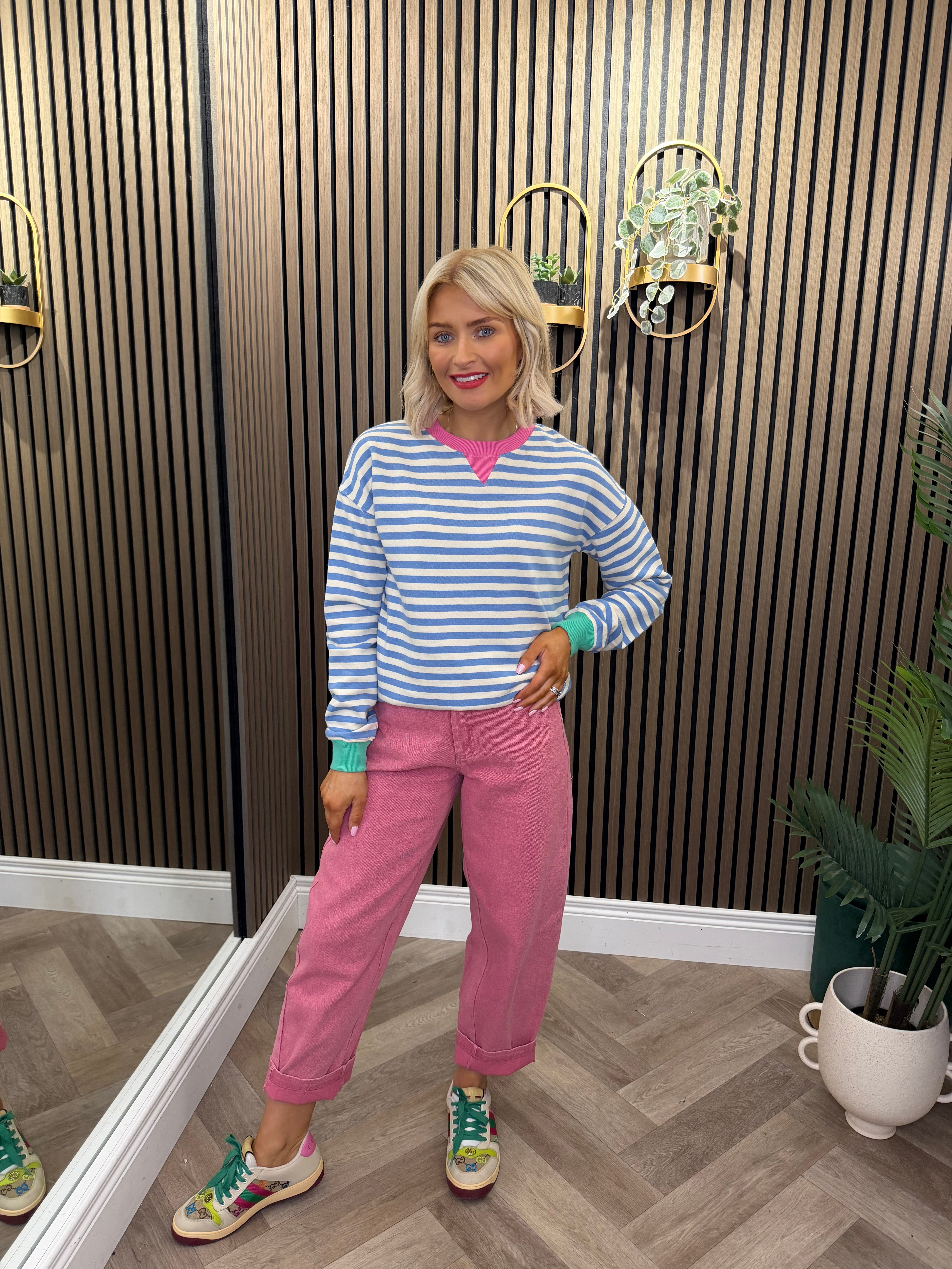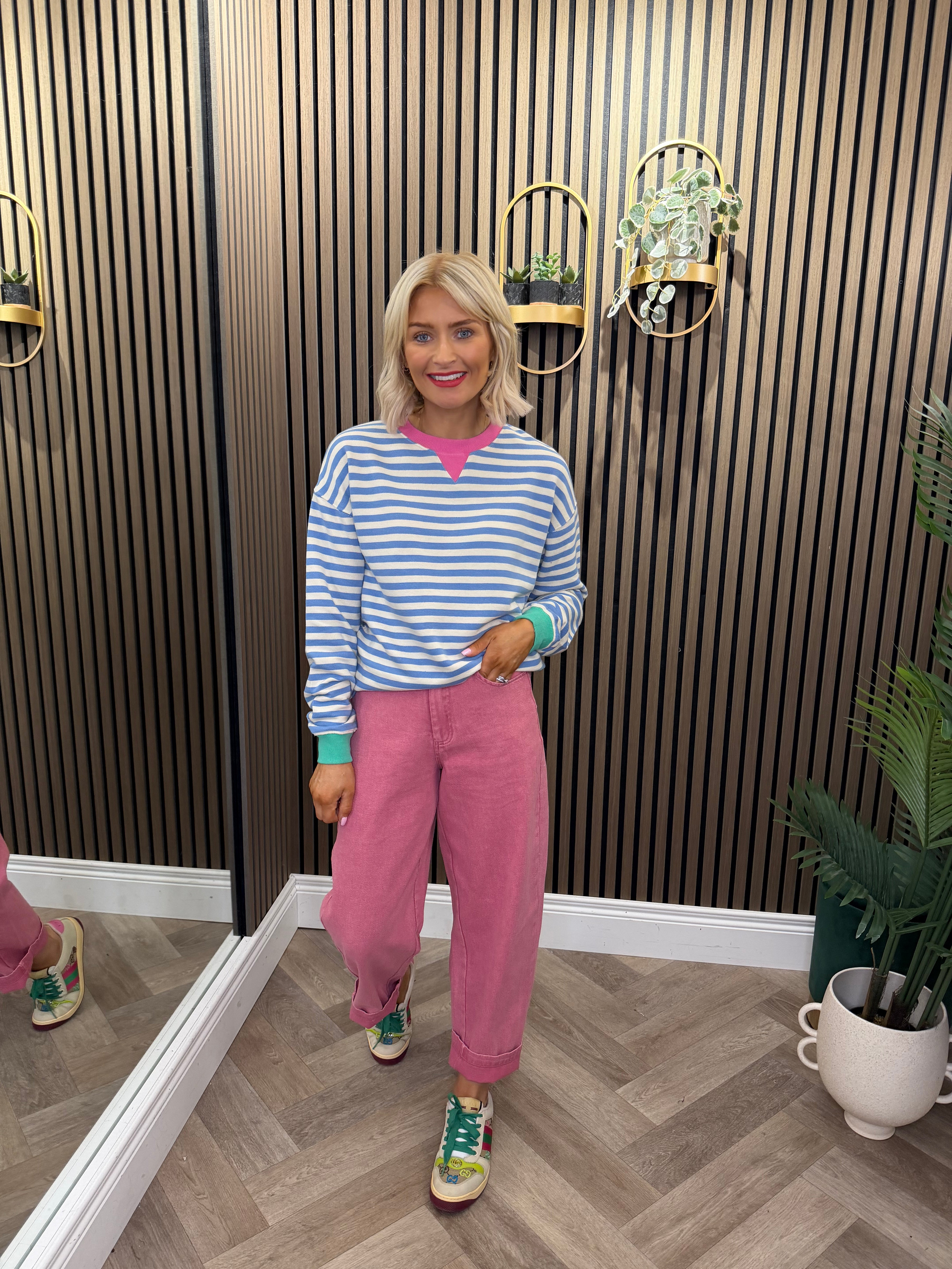Our gorgeous lightweight jeans are back! These are a fab straight leg style, high waisted, elastic waist at the back. Ankle length.