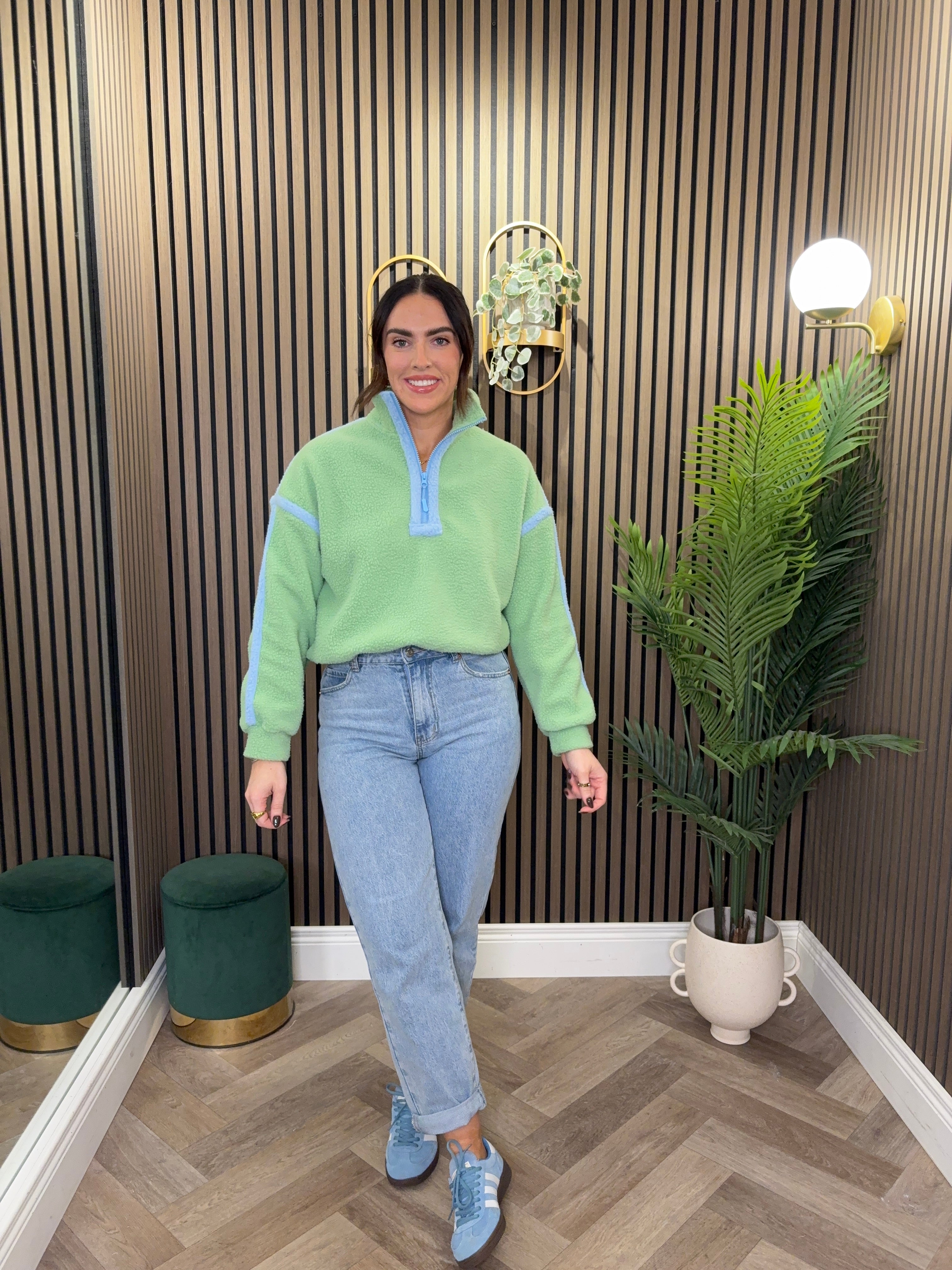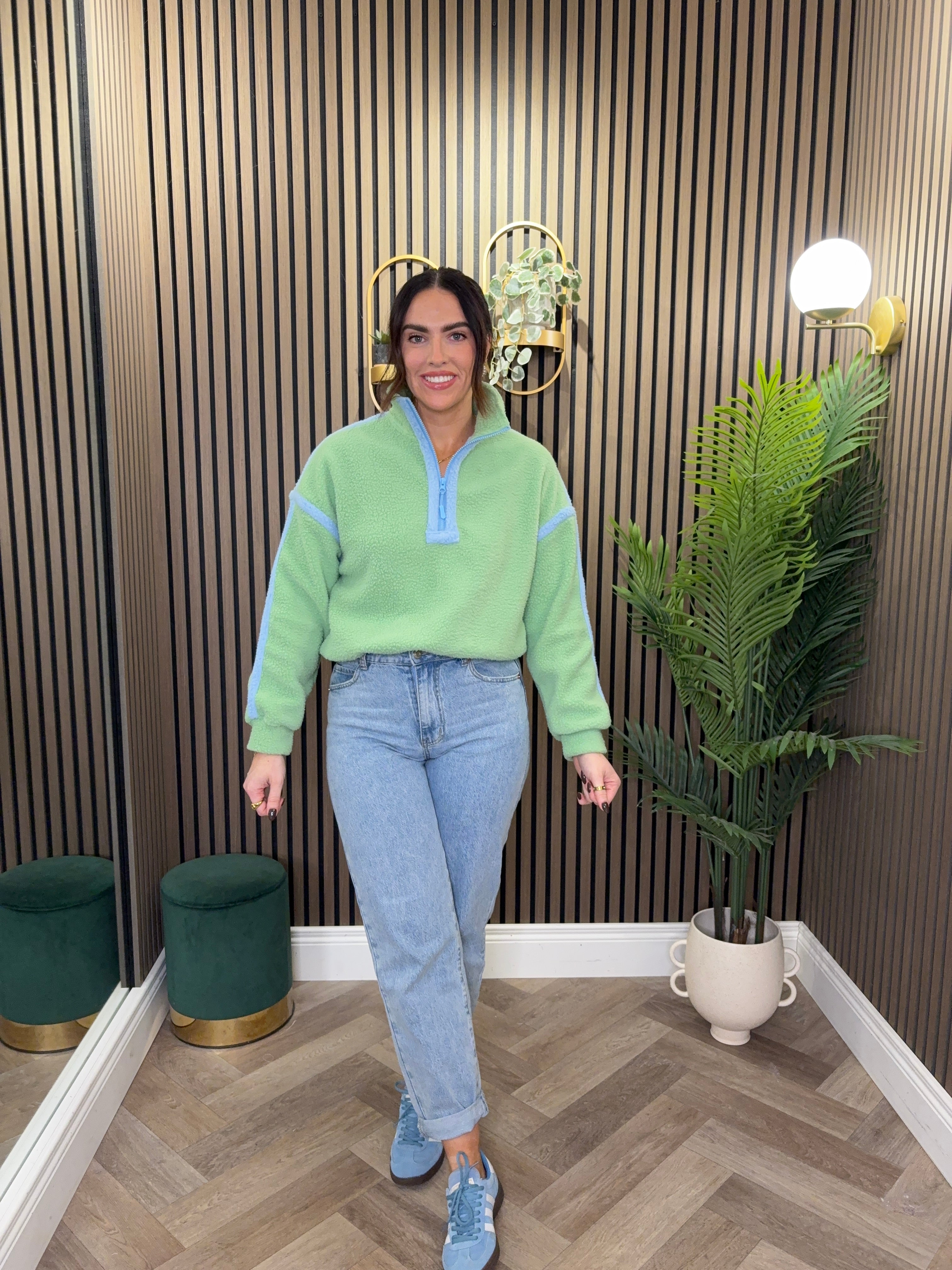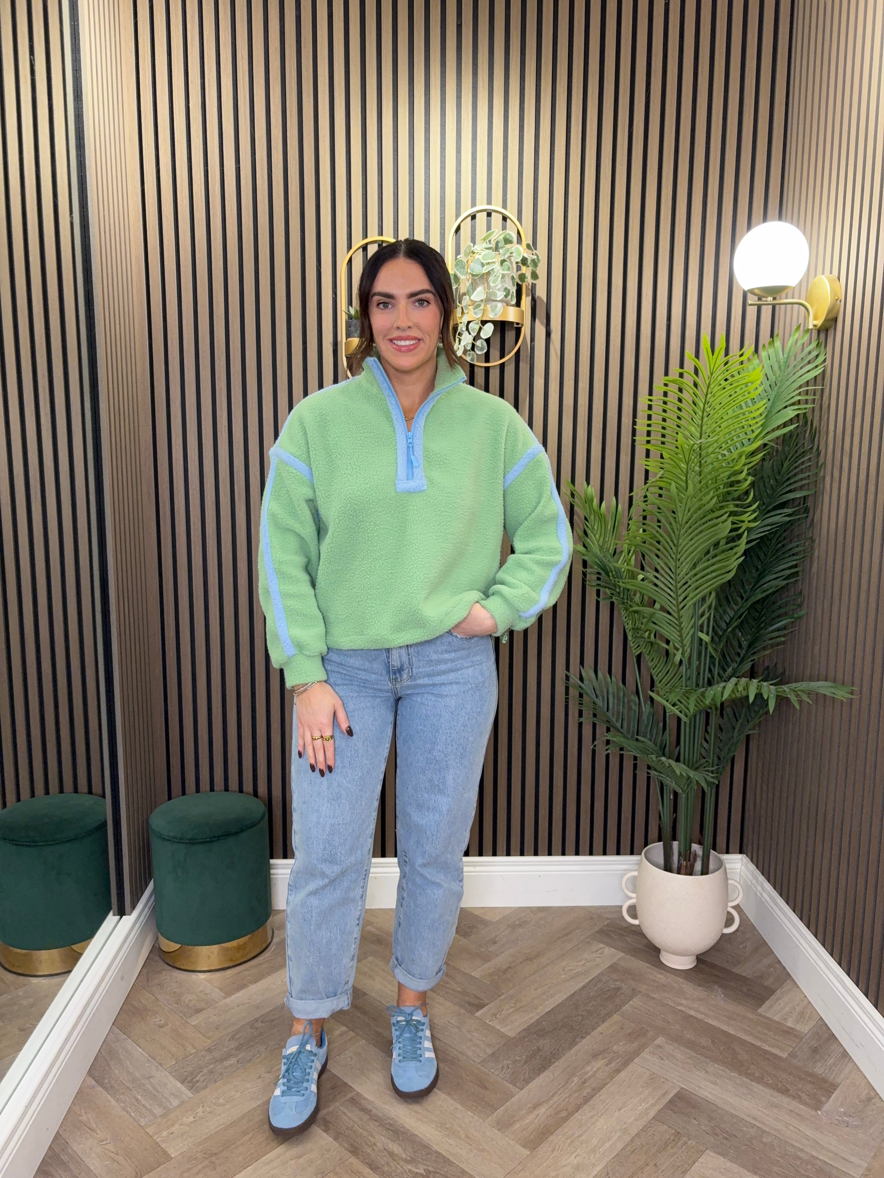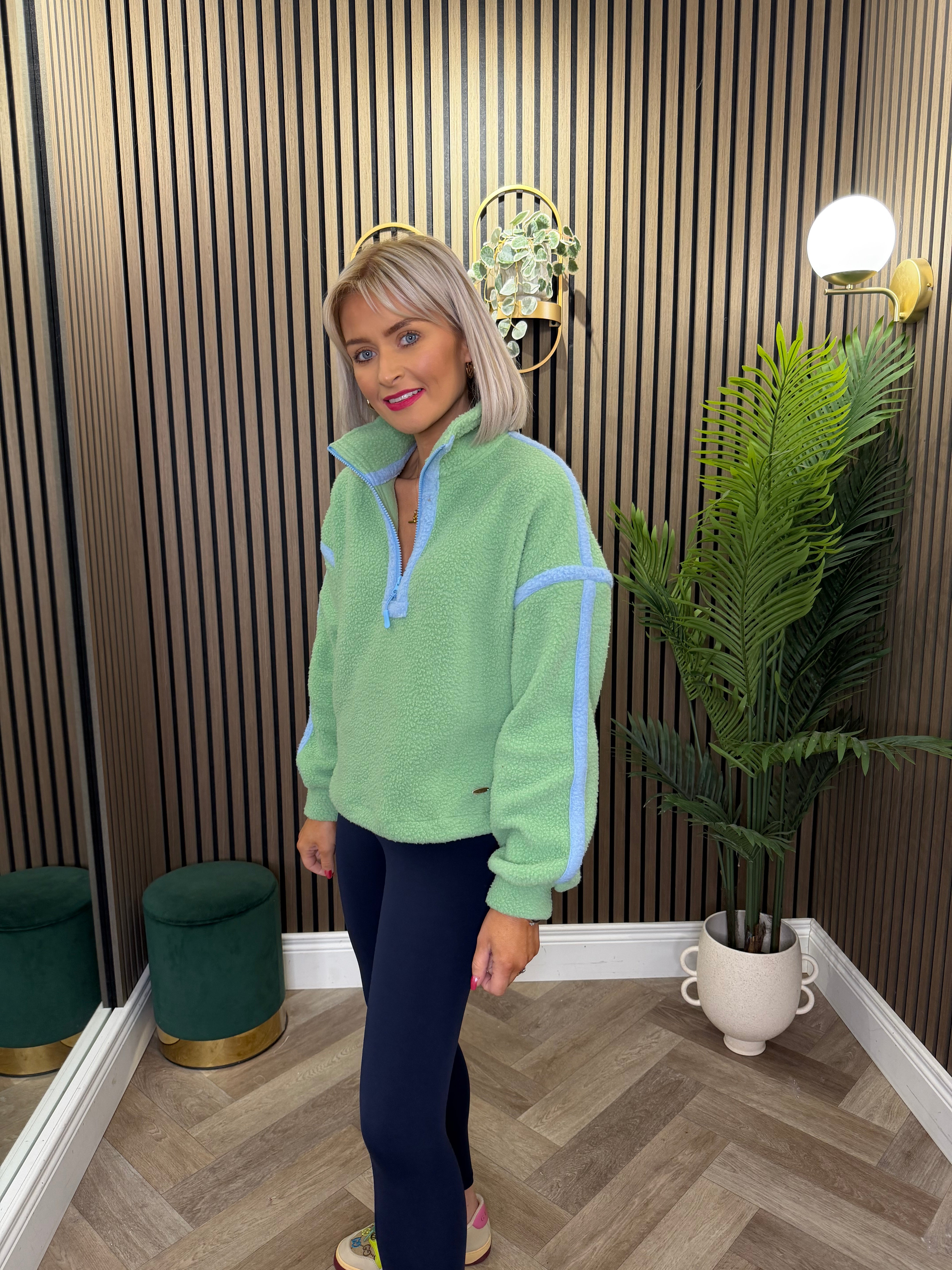 Throw on this Lala Contrast Binding 1/4 Fleece for instant comfort and style. The bold contrast binding adds a playful twist to a classic piece, while the full zip makes layering a breeze. Soft, snuggly fleece that's perfect for casual days and cosy nights in.