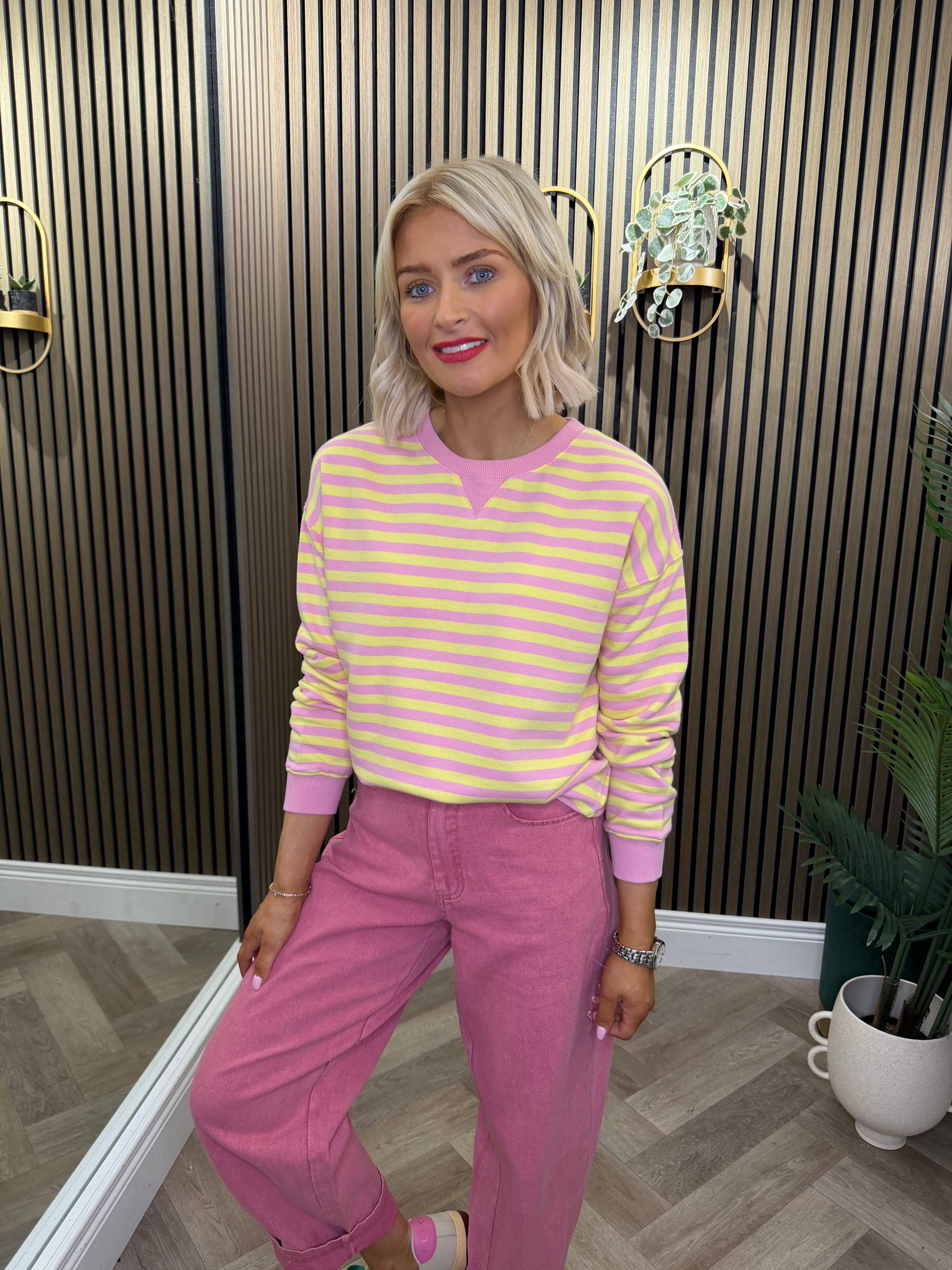 Lucia Sweatshirt- Pink/Yellow Stripe