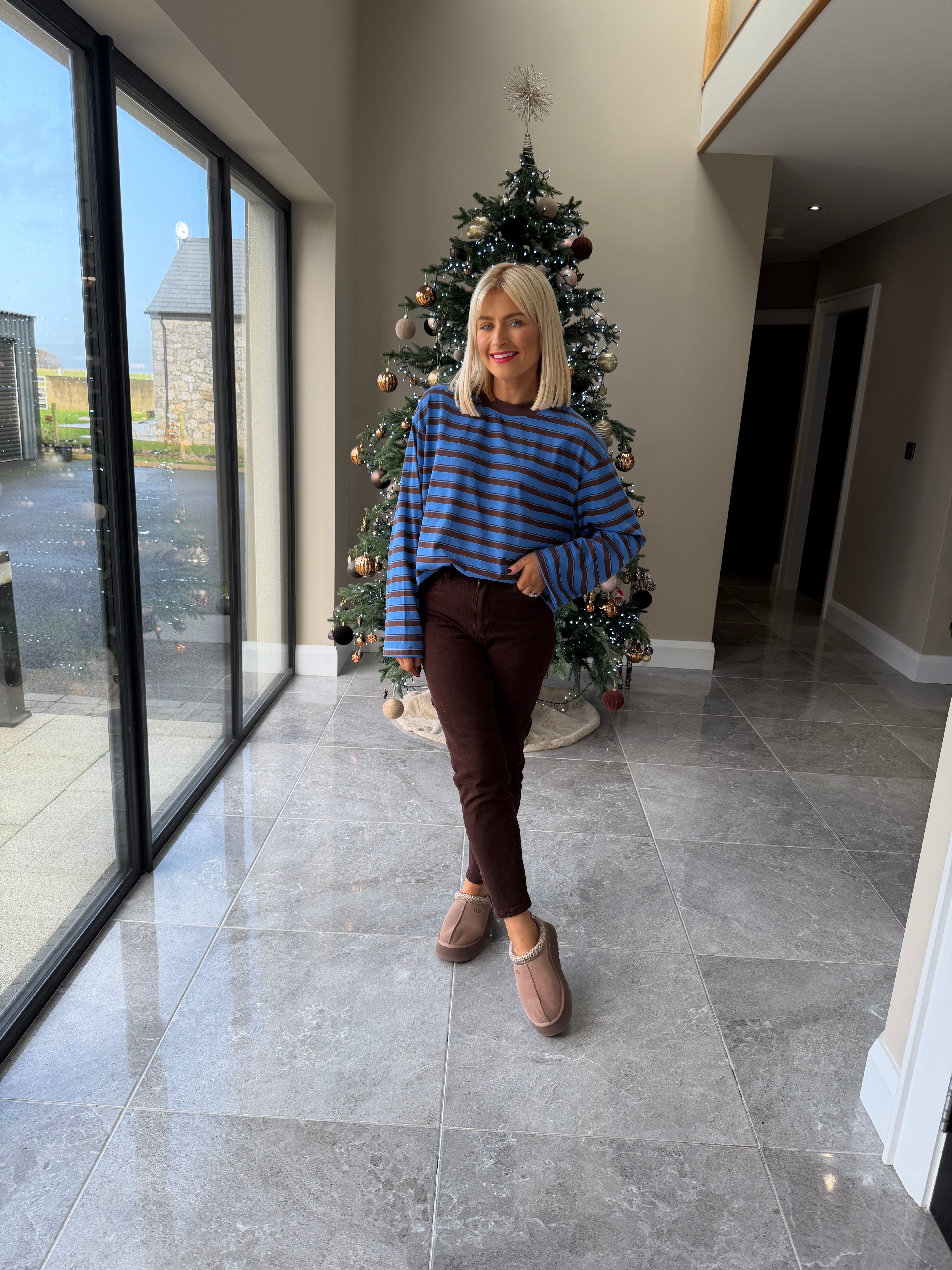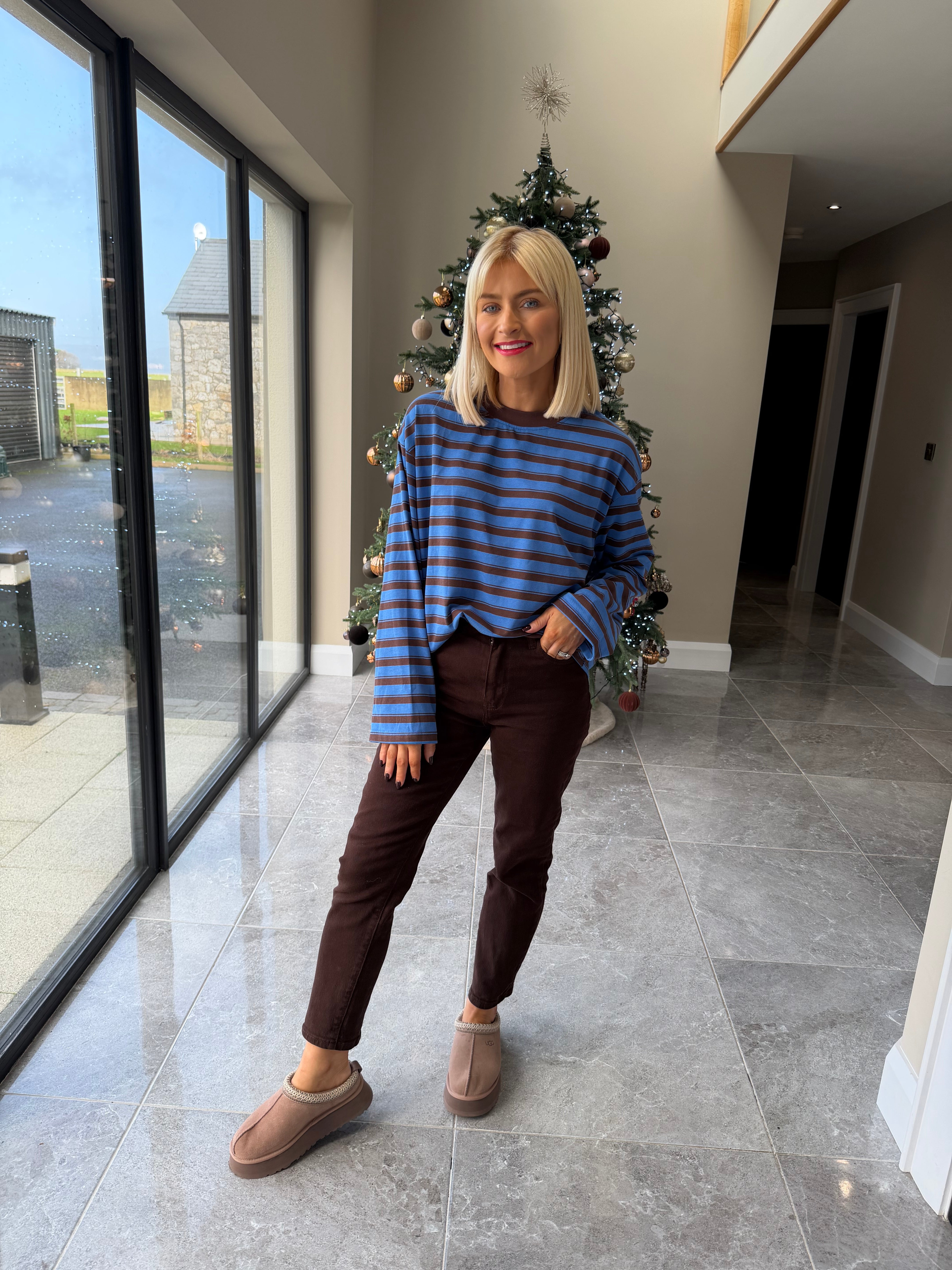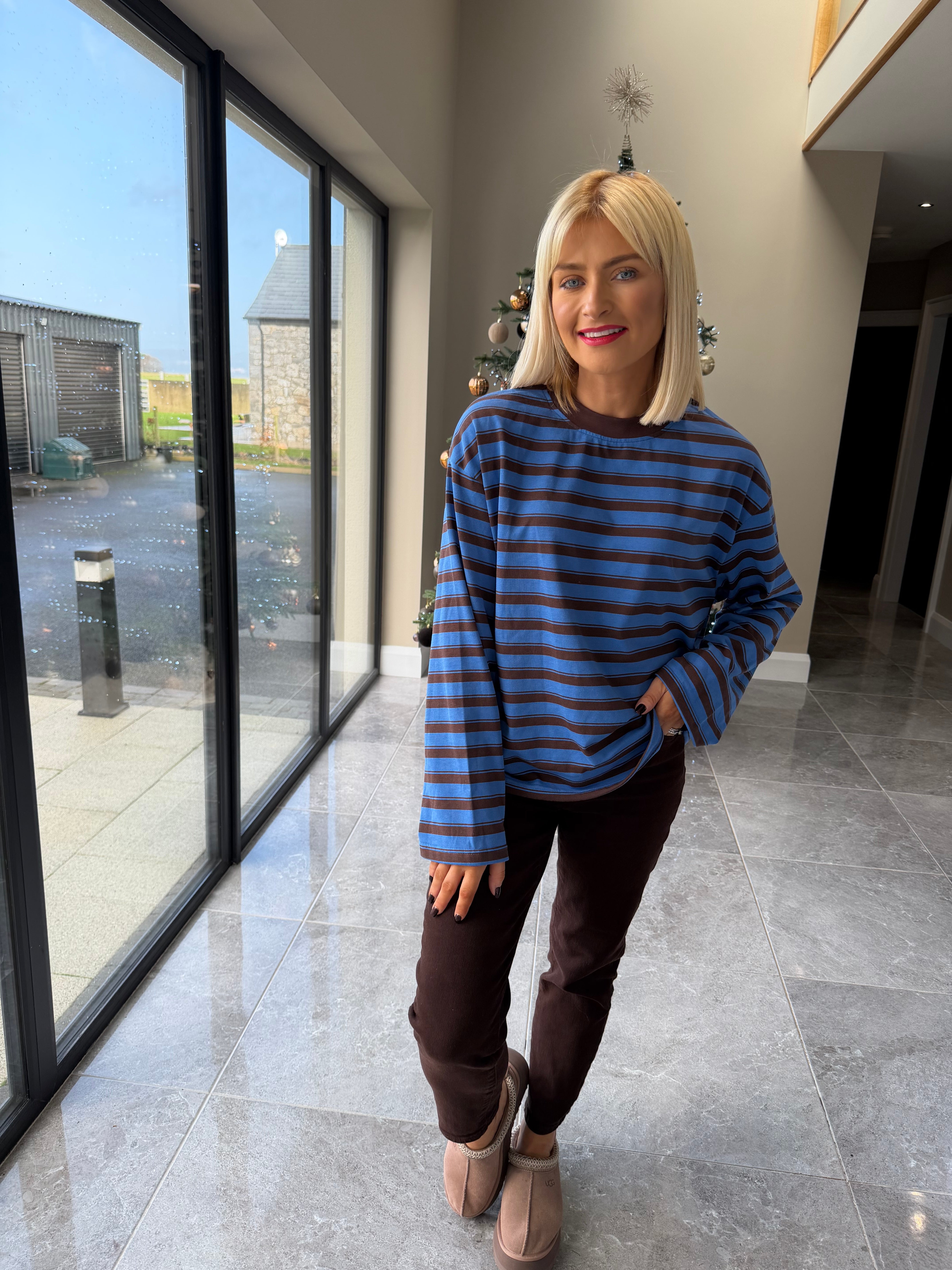 Long sleeve, round neckline, relaxed style top. Stripe print. Available in more colours.