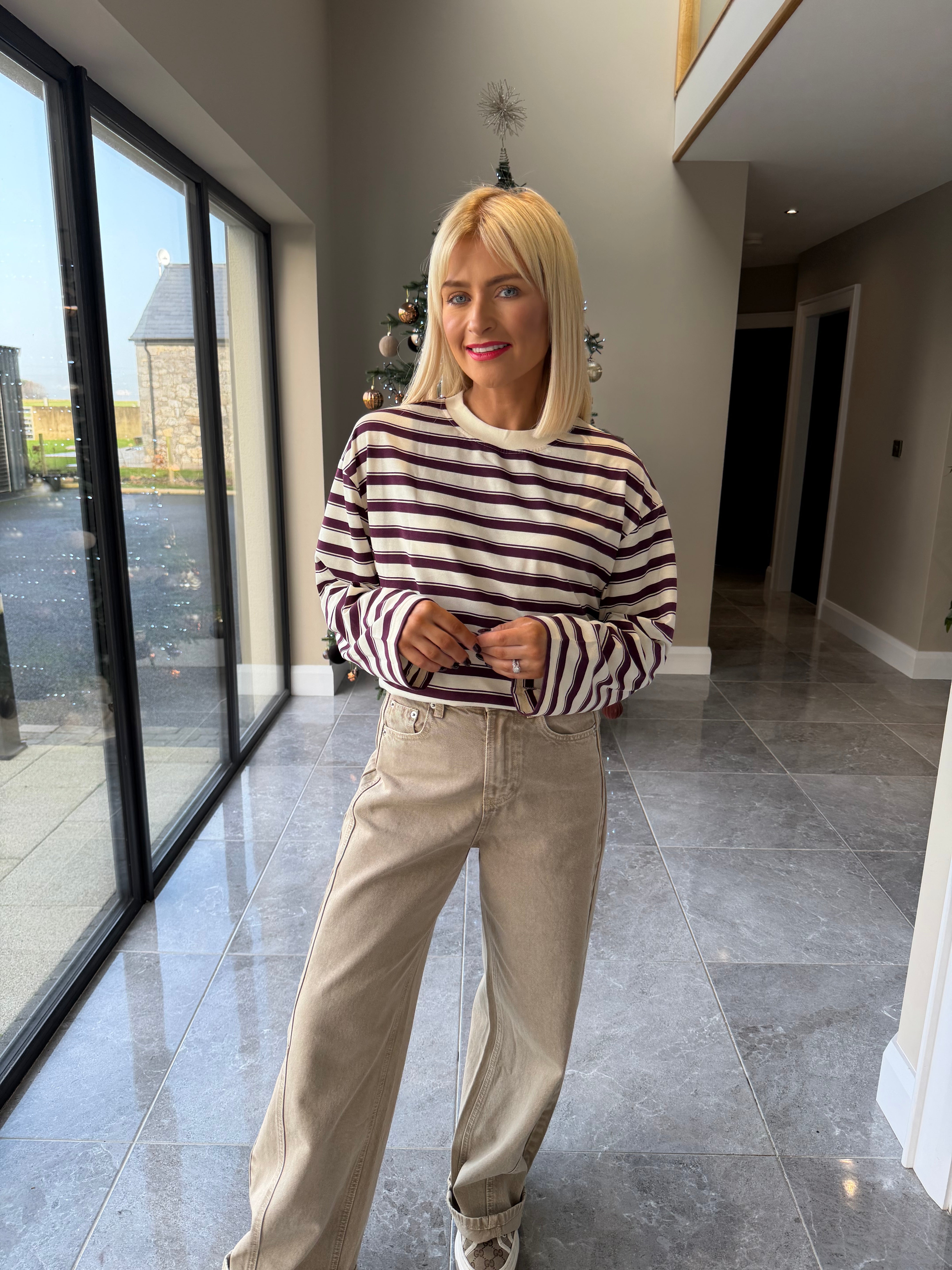 Long sleeve, round neckline, relaxed style top. Stripe print. Available in more colours.