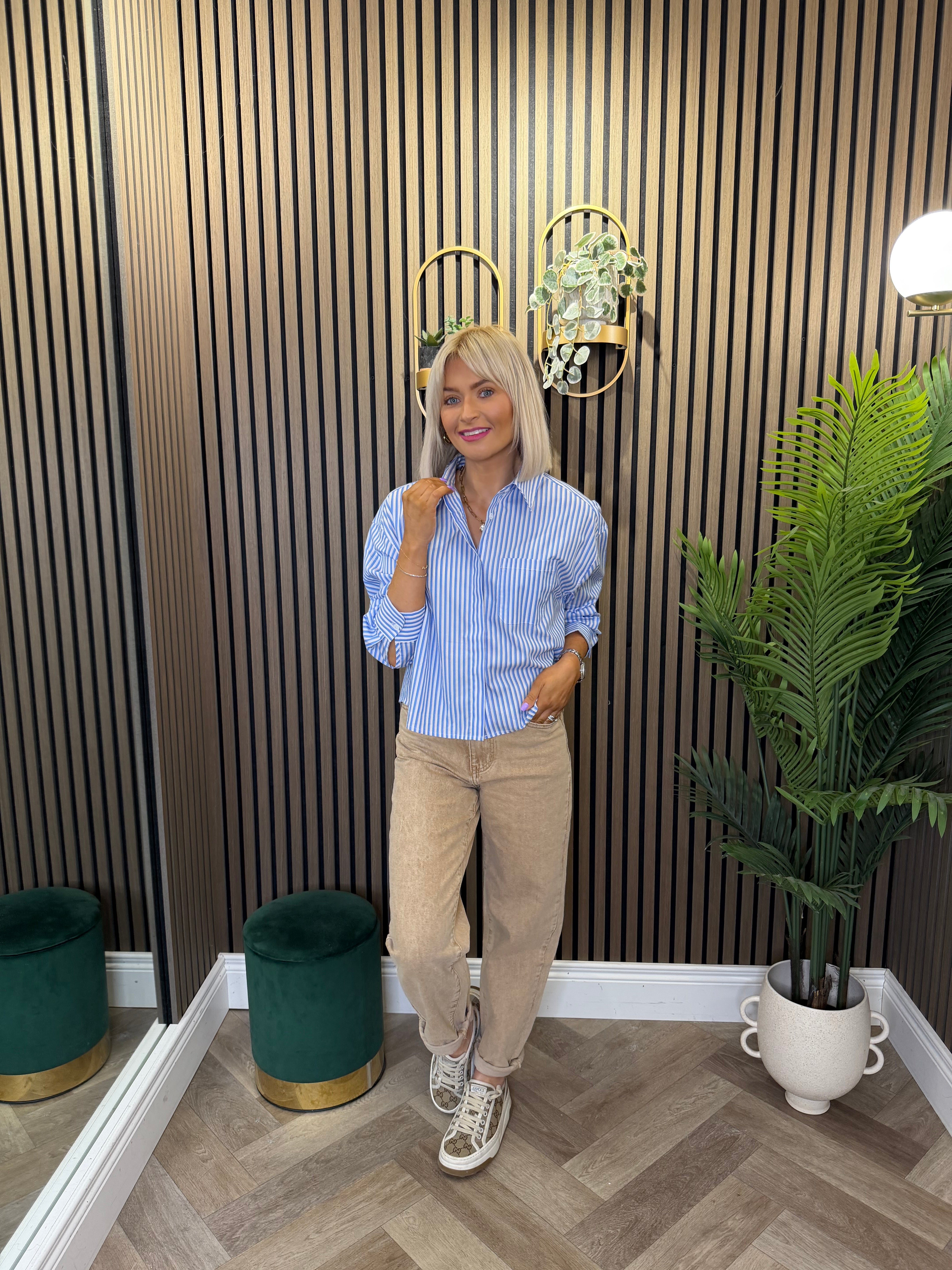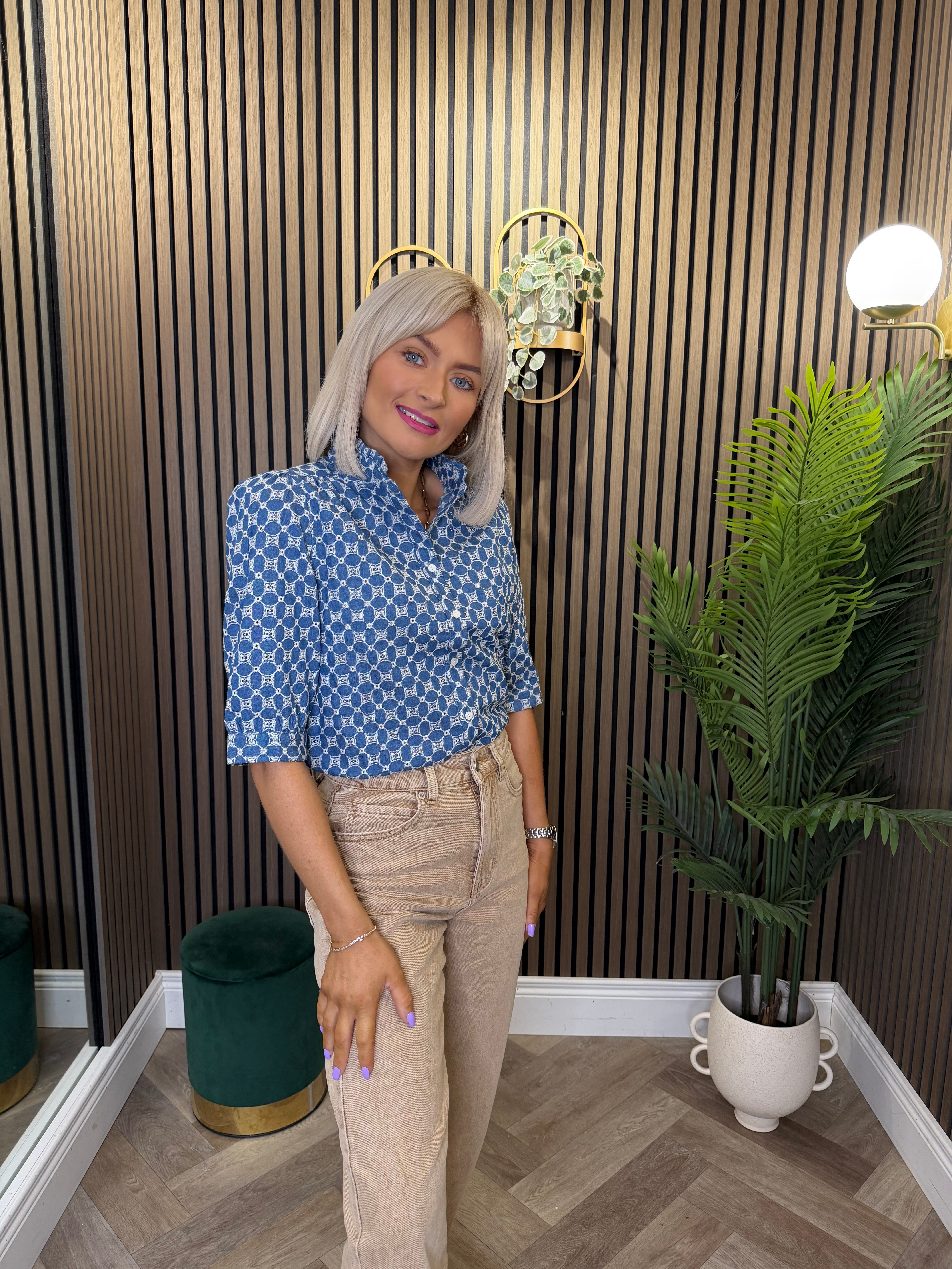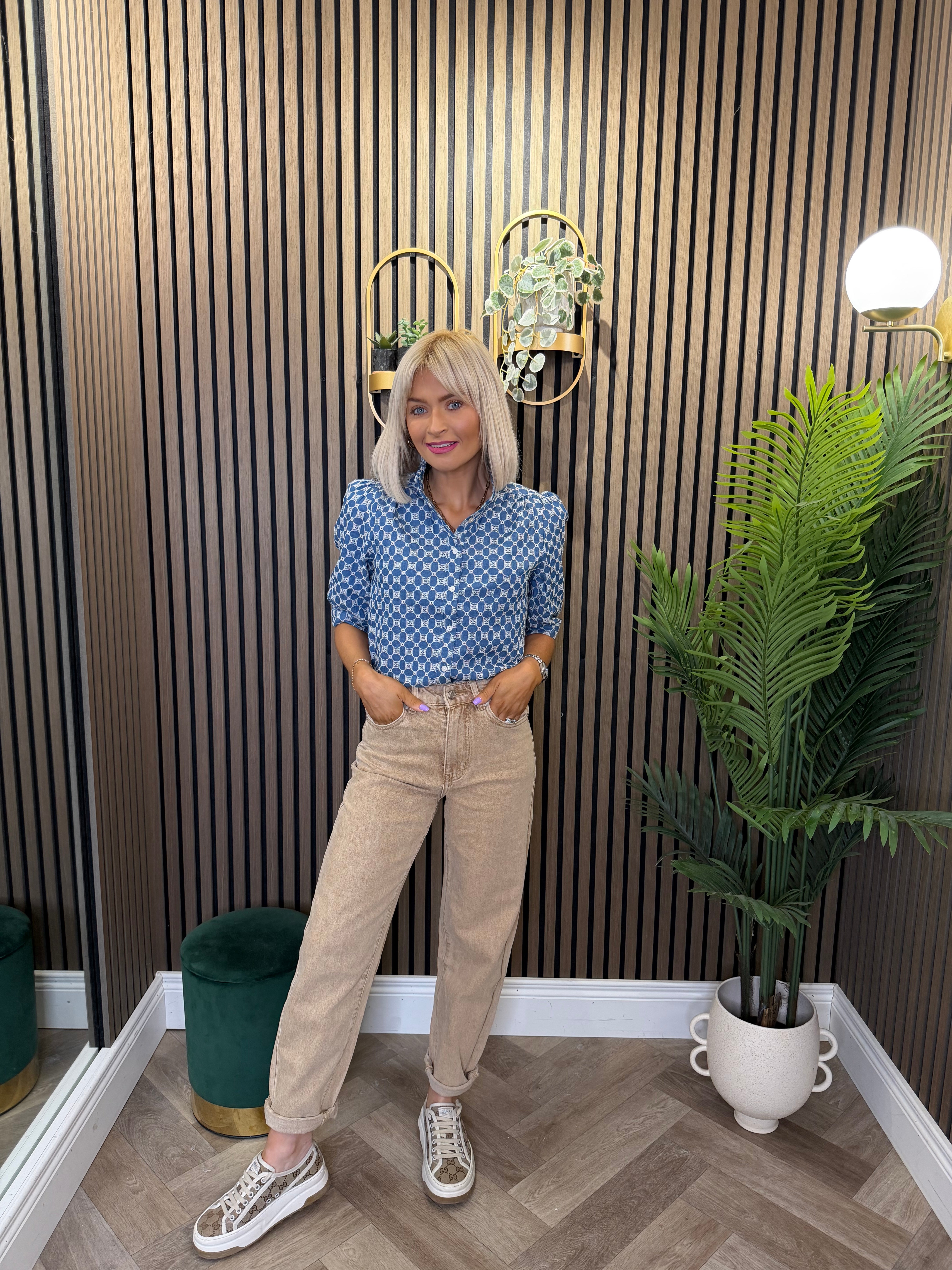 High waisted, mom style jeans. Small turn up detailing.