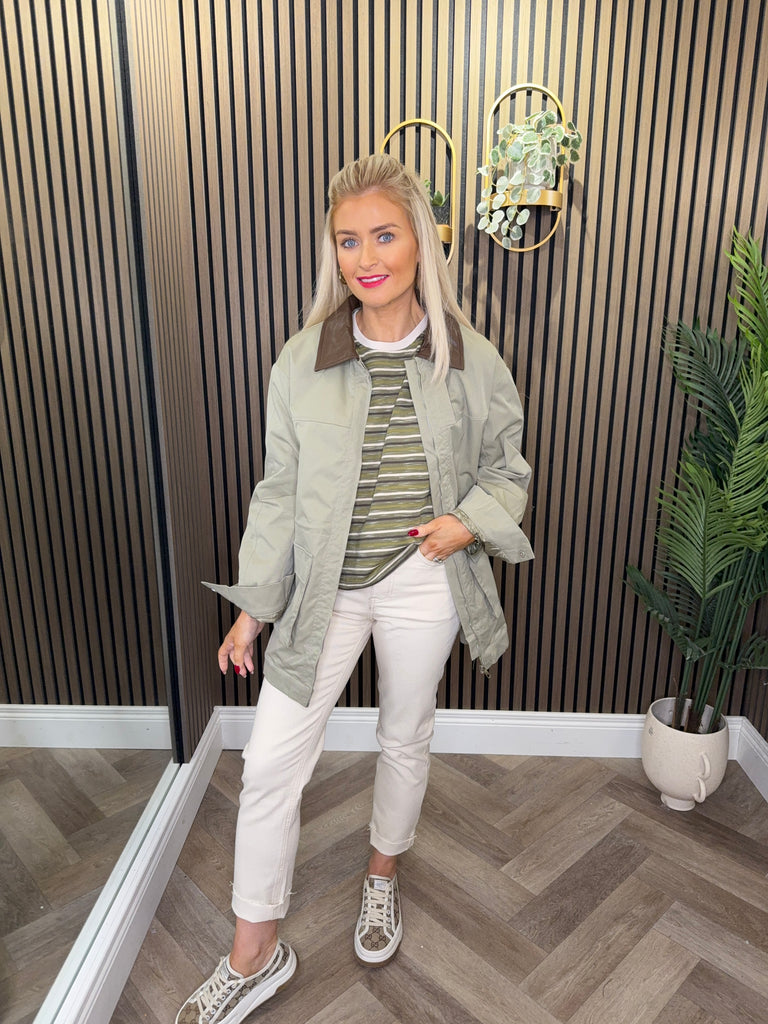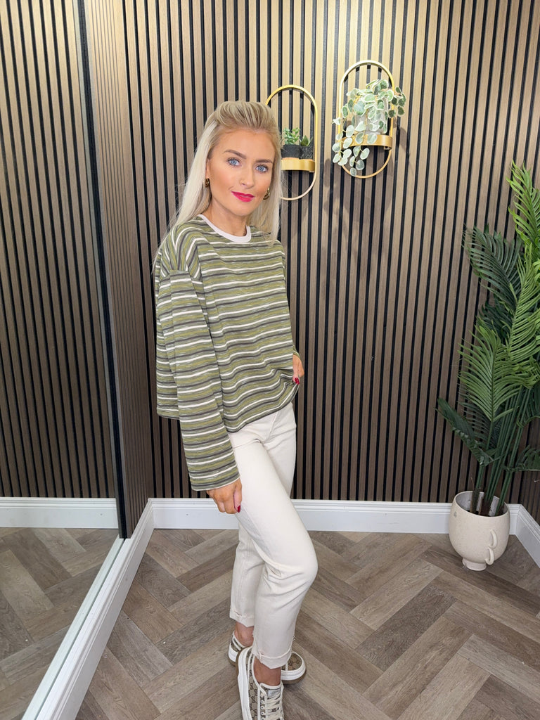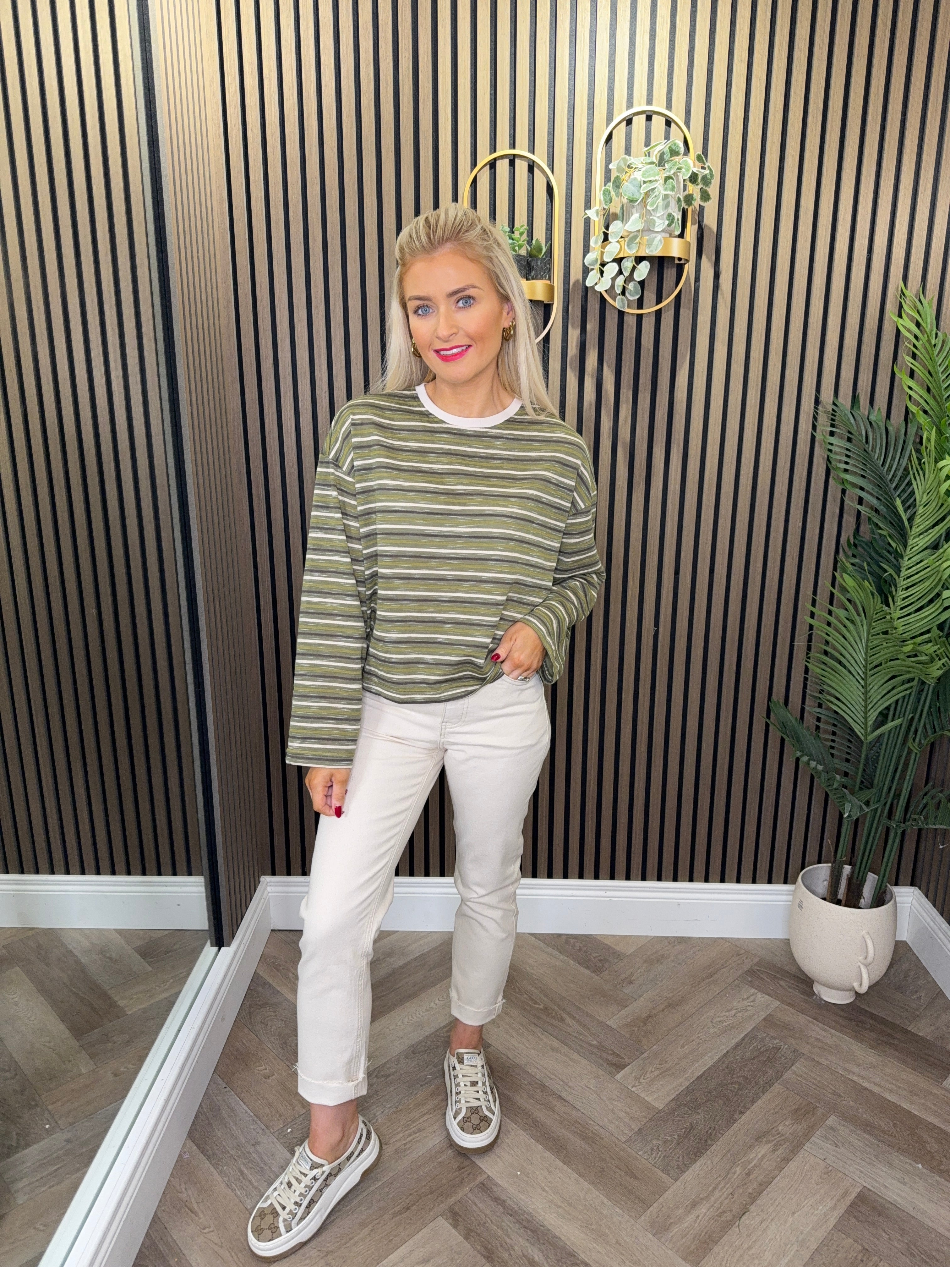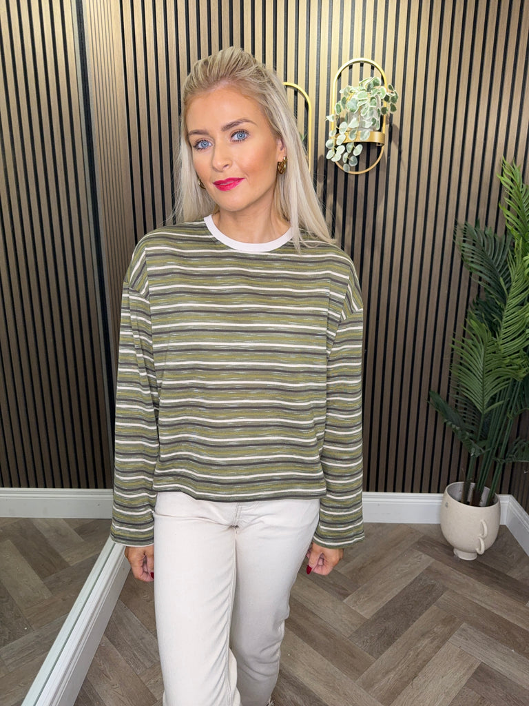 Long sleeve, round neckline, regular fit top. Thin stripe detailing. Available in more colours.