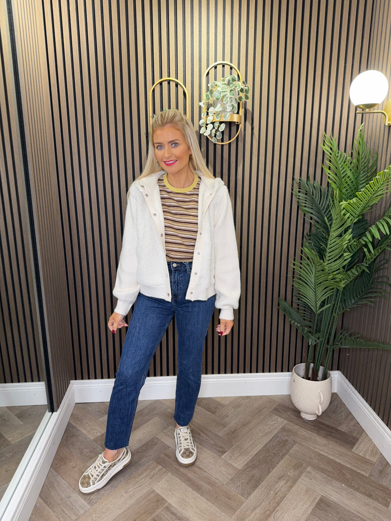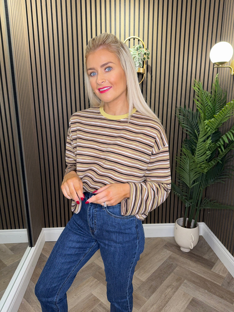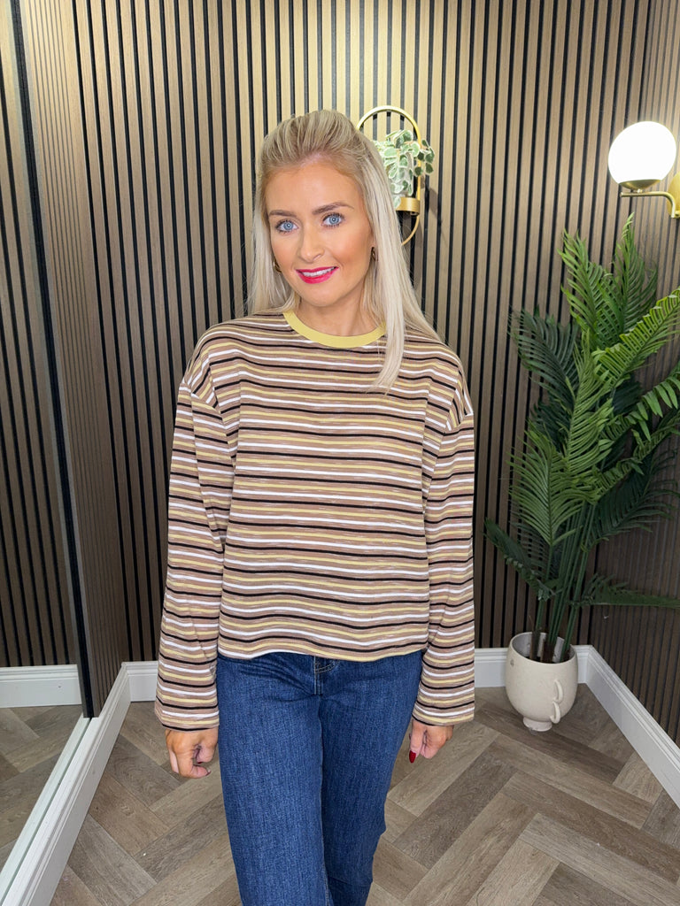 Long sleeve, round neckline, regular fit top. Thin stripe detailing. Available in more colours.
