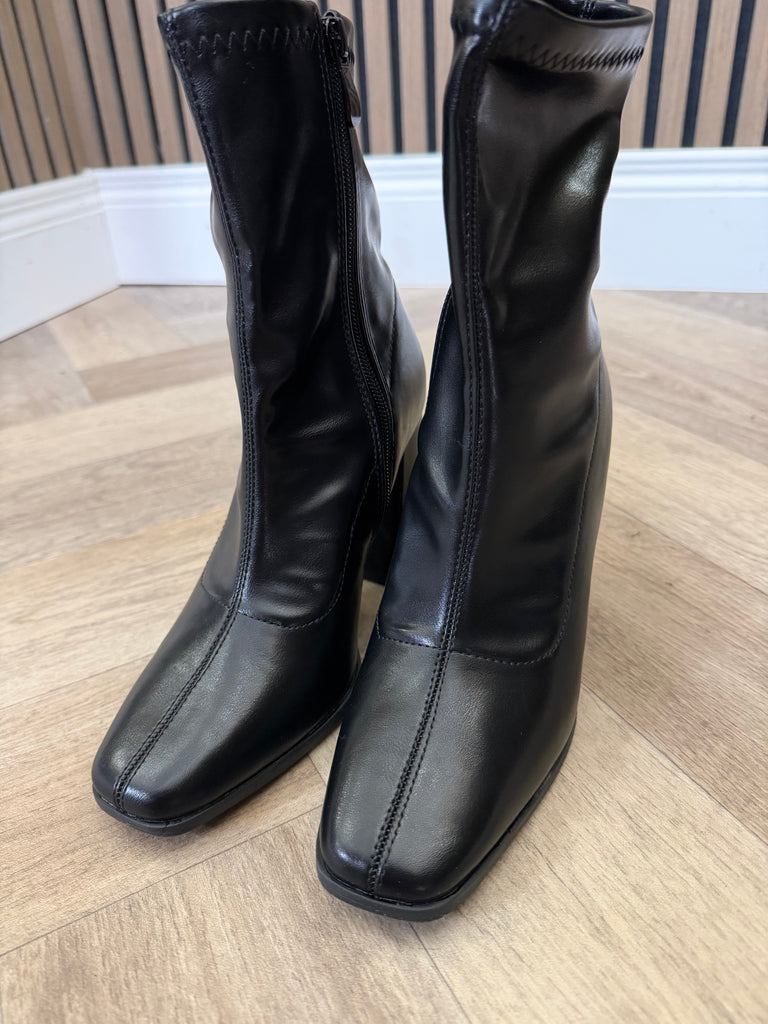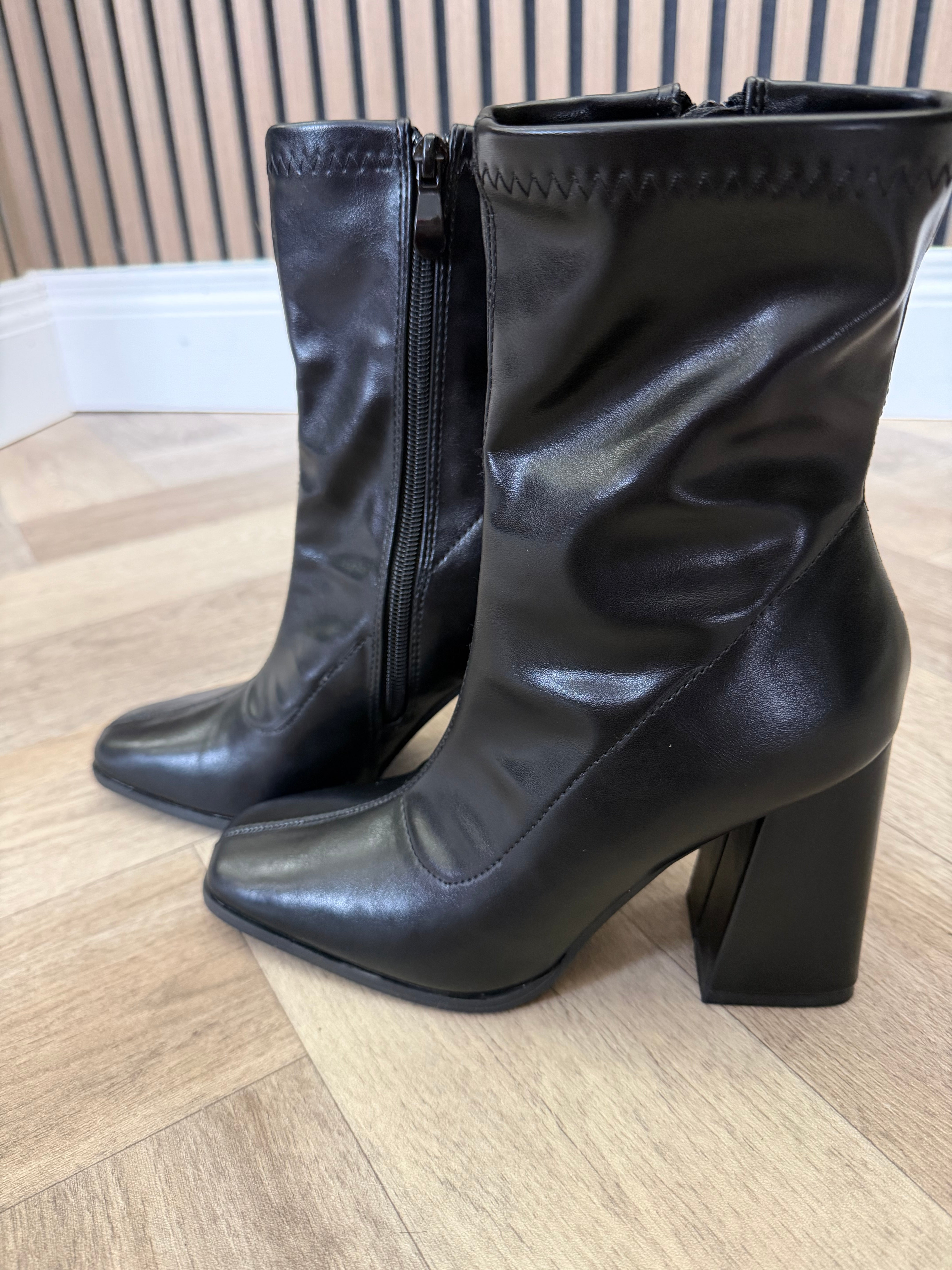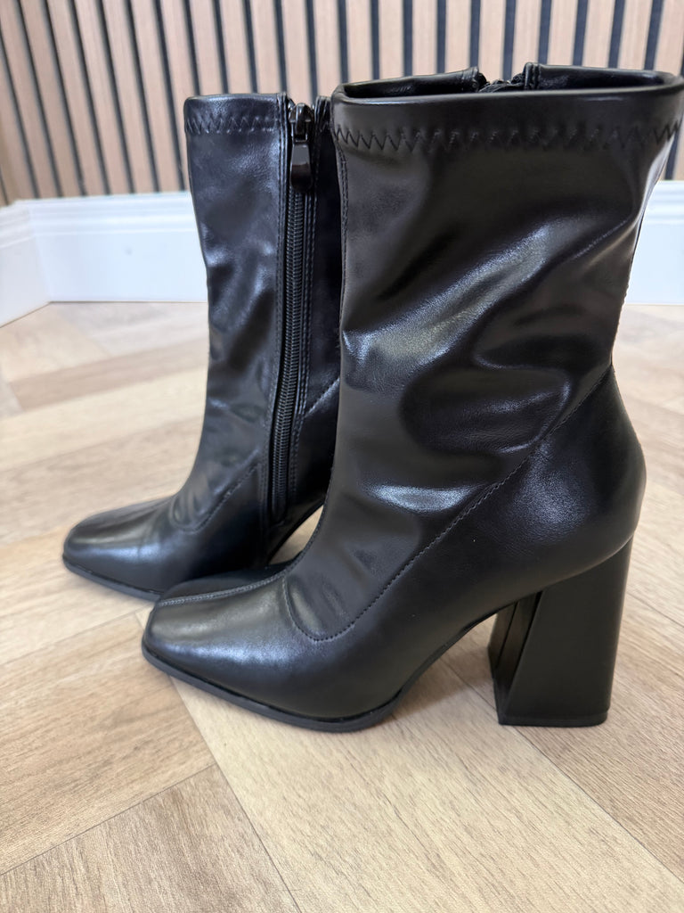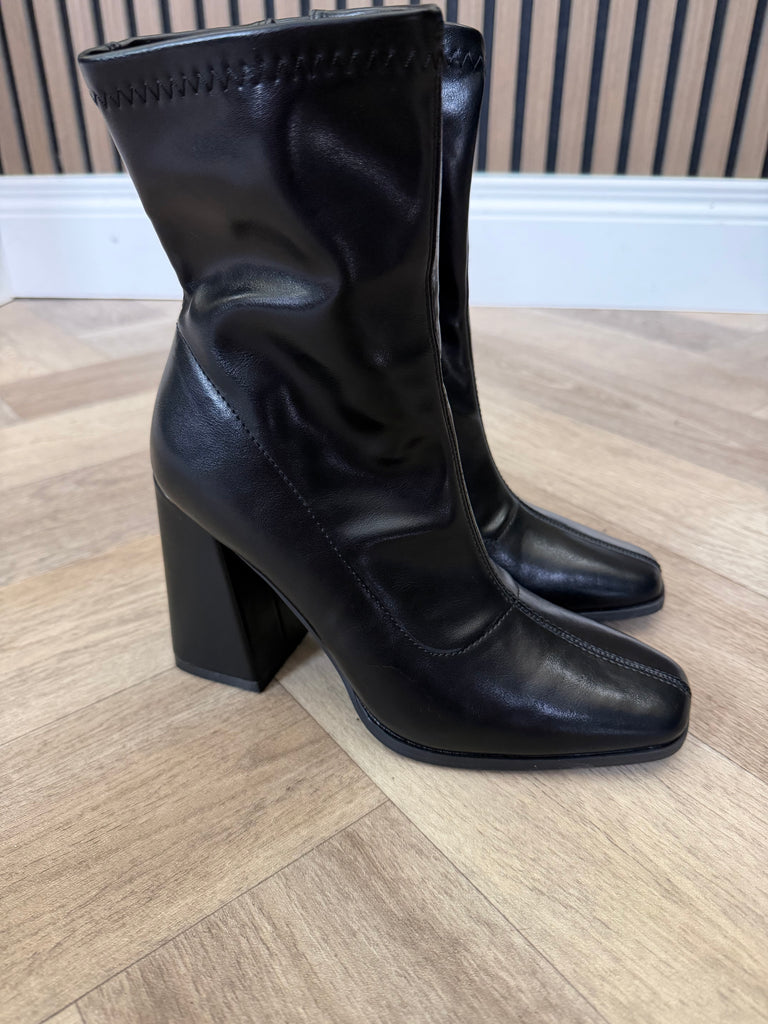These are black leather look zip up ankle boots. Perfect for the autumn!