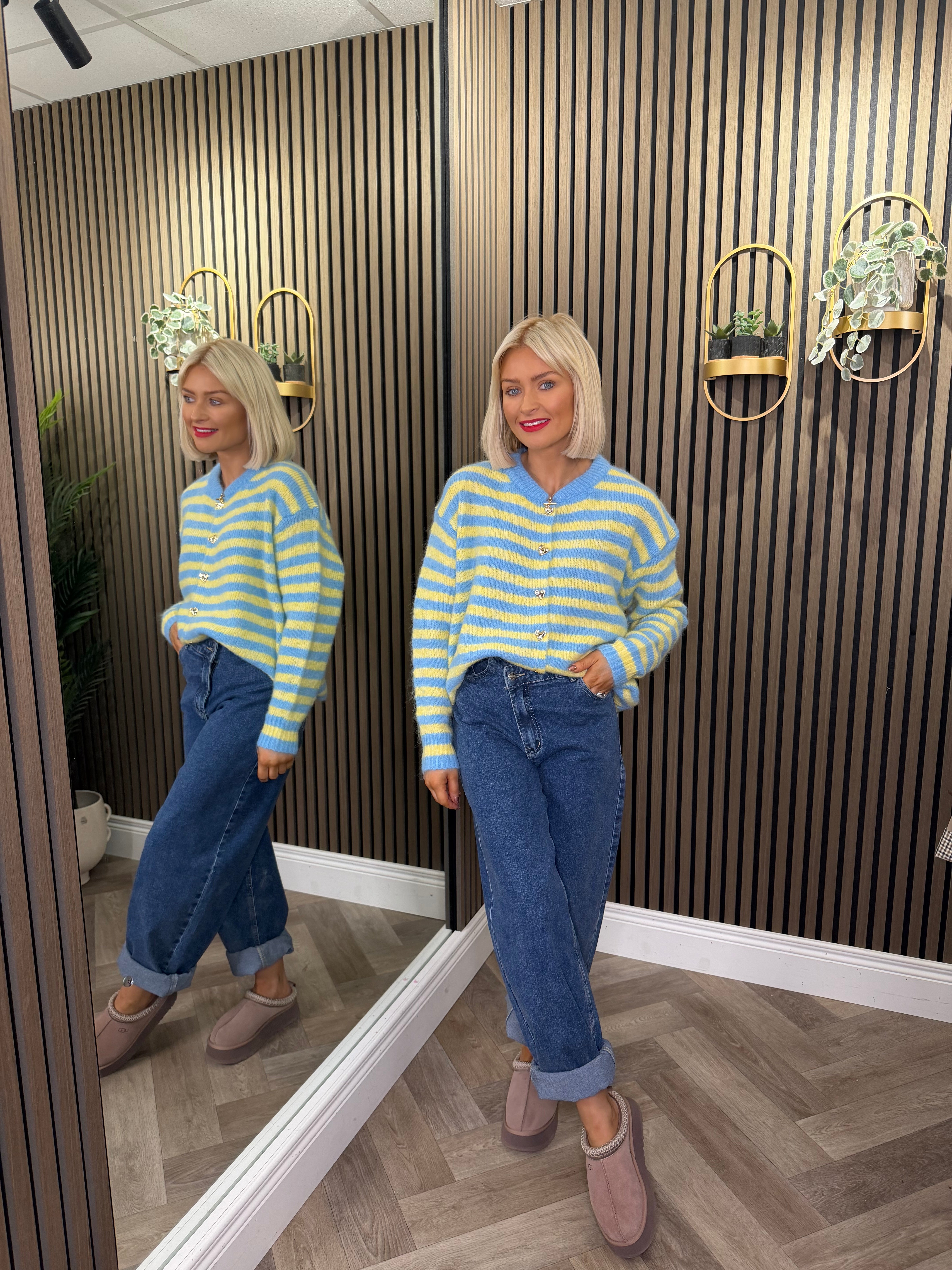 Caitlin Stripe Cardigan Blue/Yellow