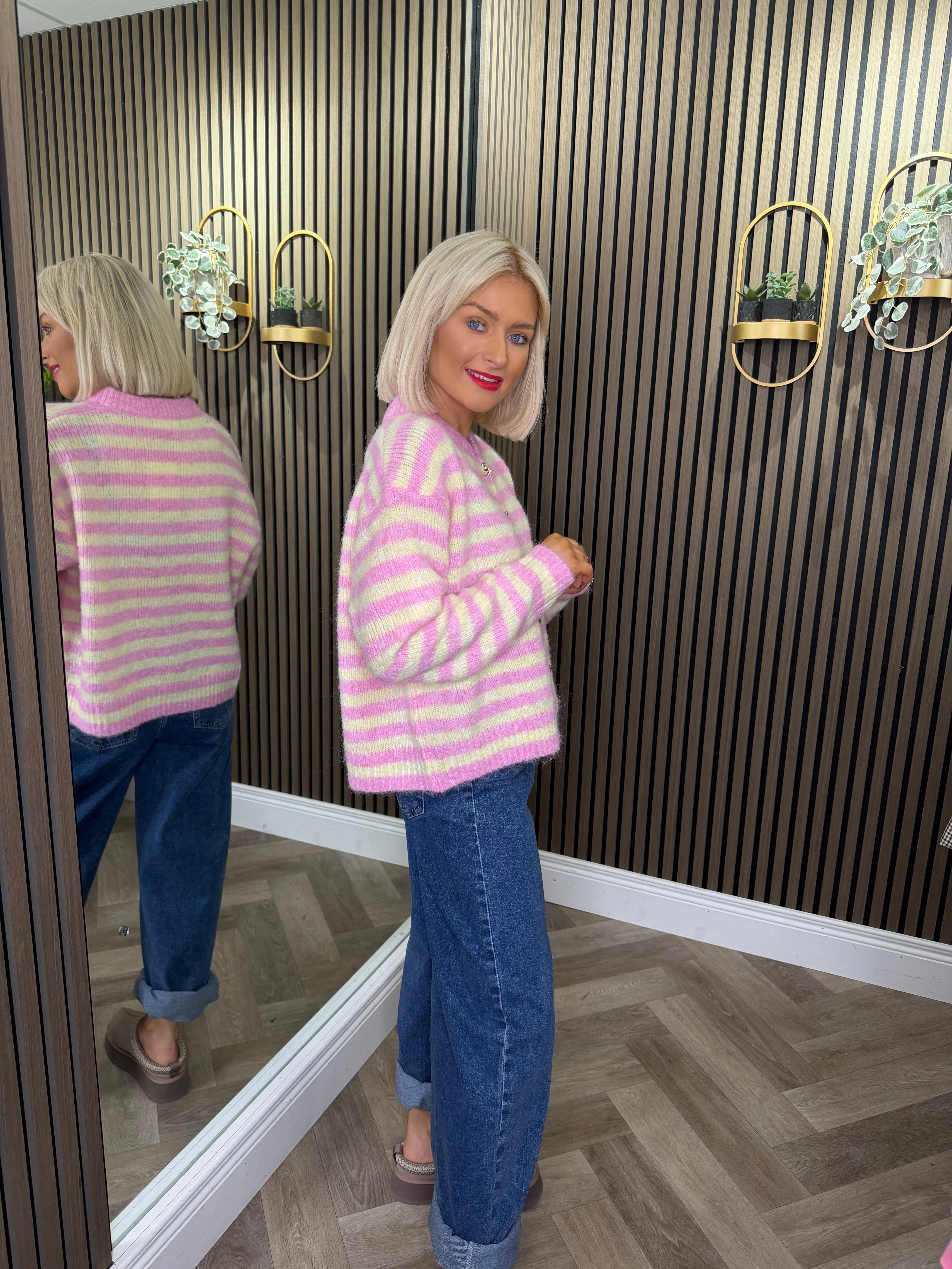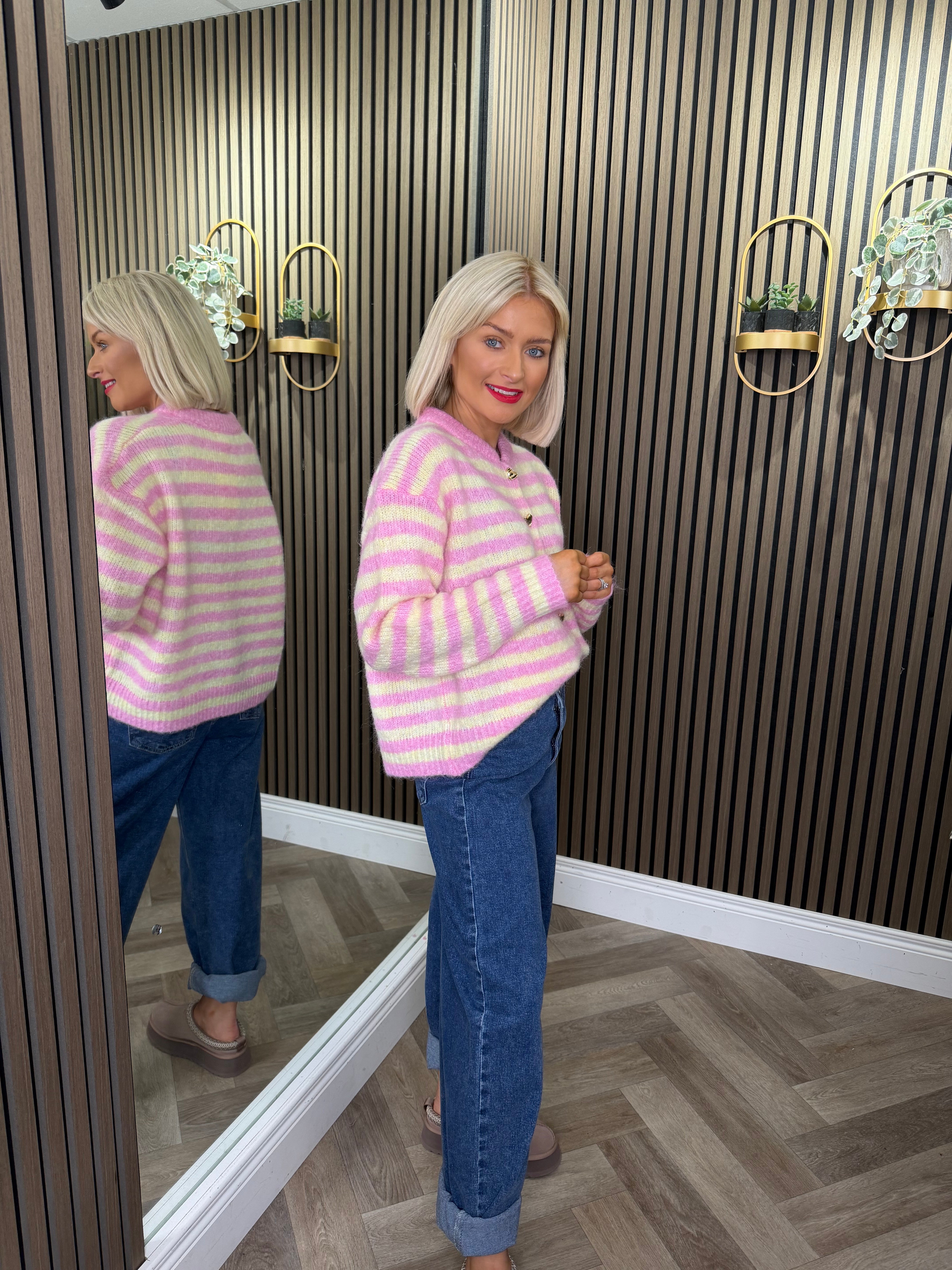 Caitlin Stripe Cardigan Pink/Yellow