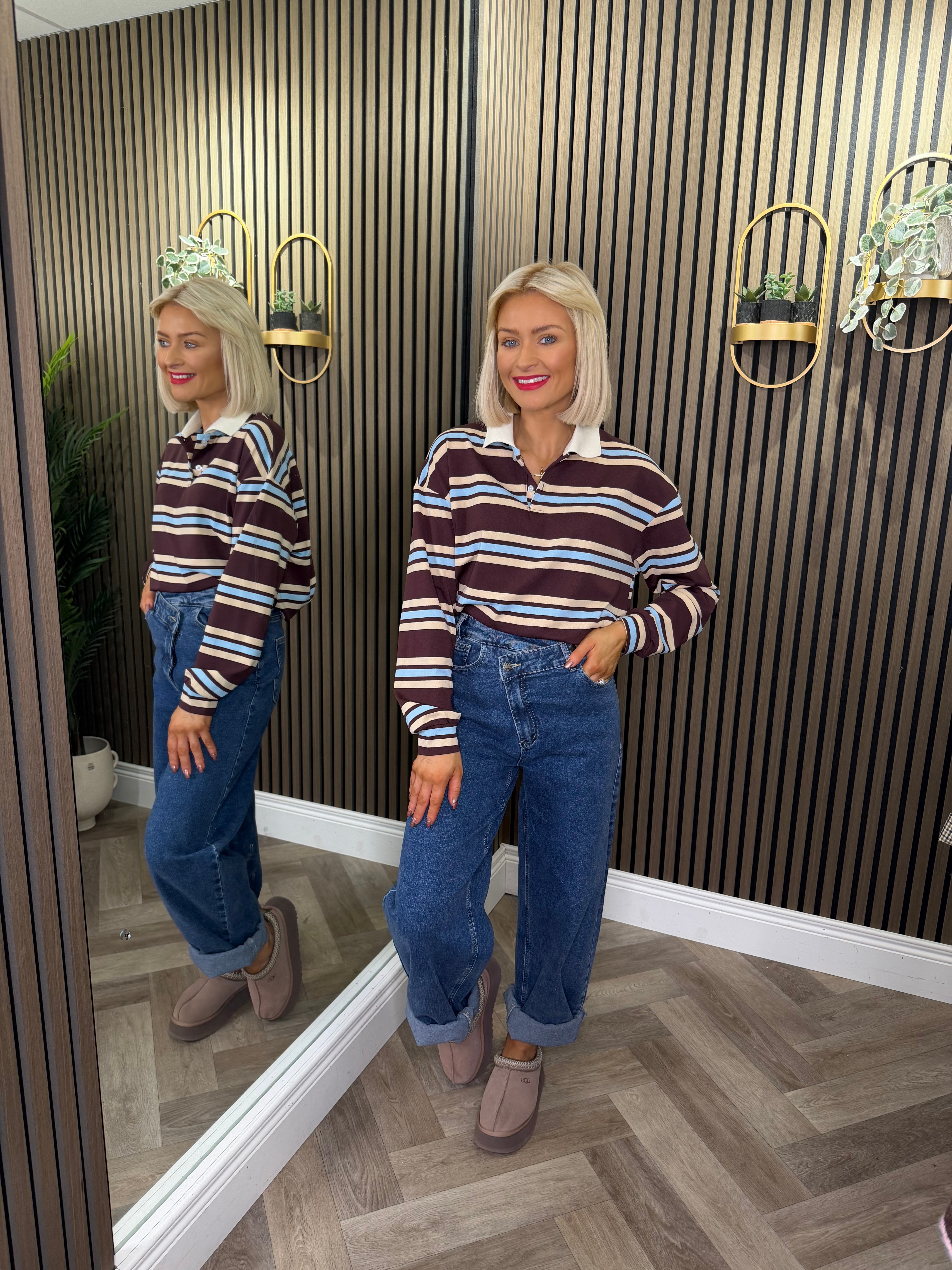 Cara Rugby Top Burgundy/Blue/Beige Stripe