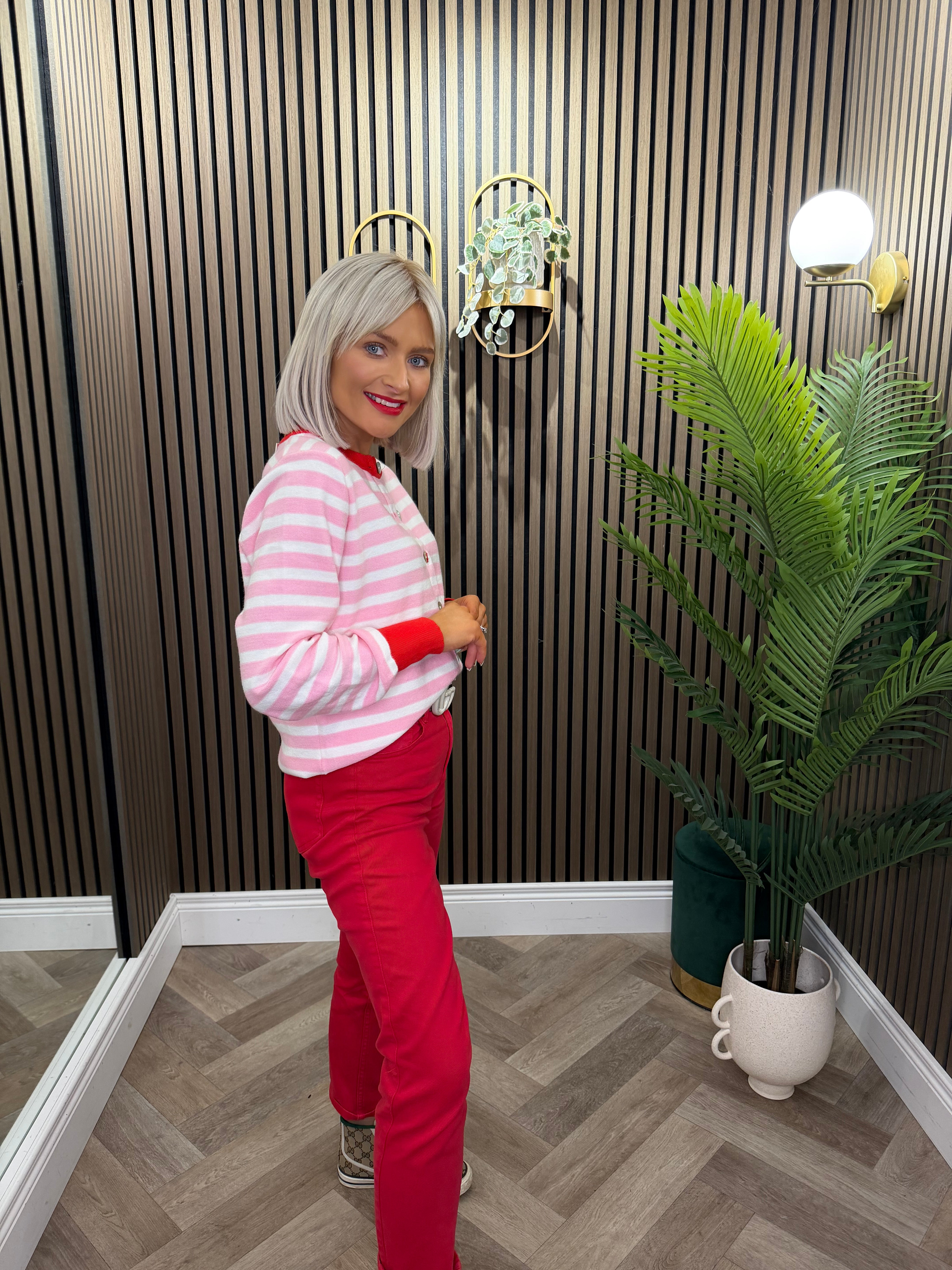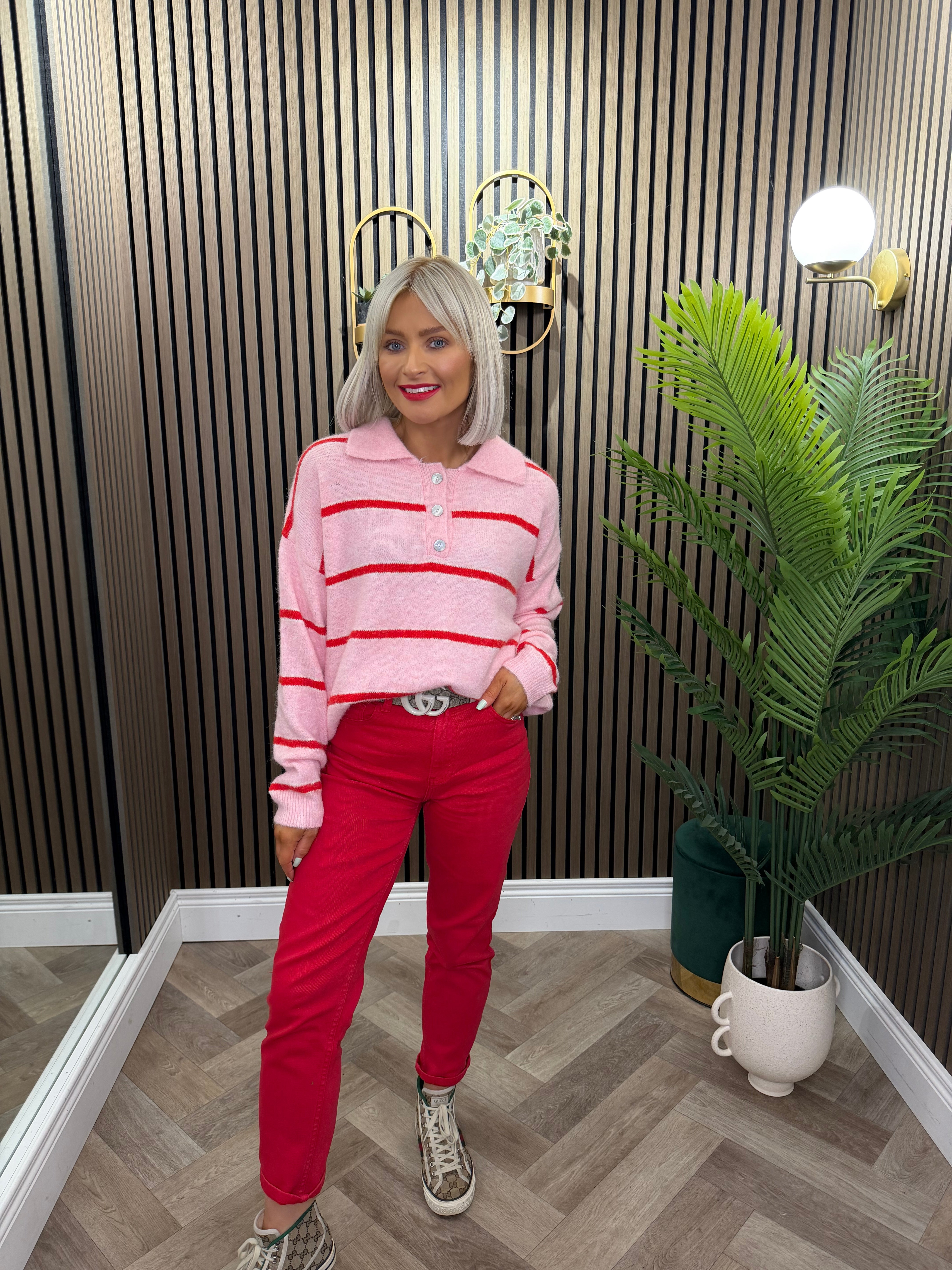High waisted, straight leg, mom style jeans. Side and back pockets. Available in more colours.