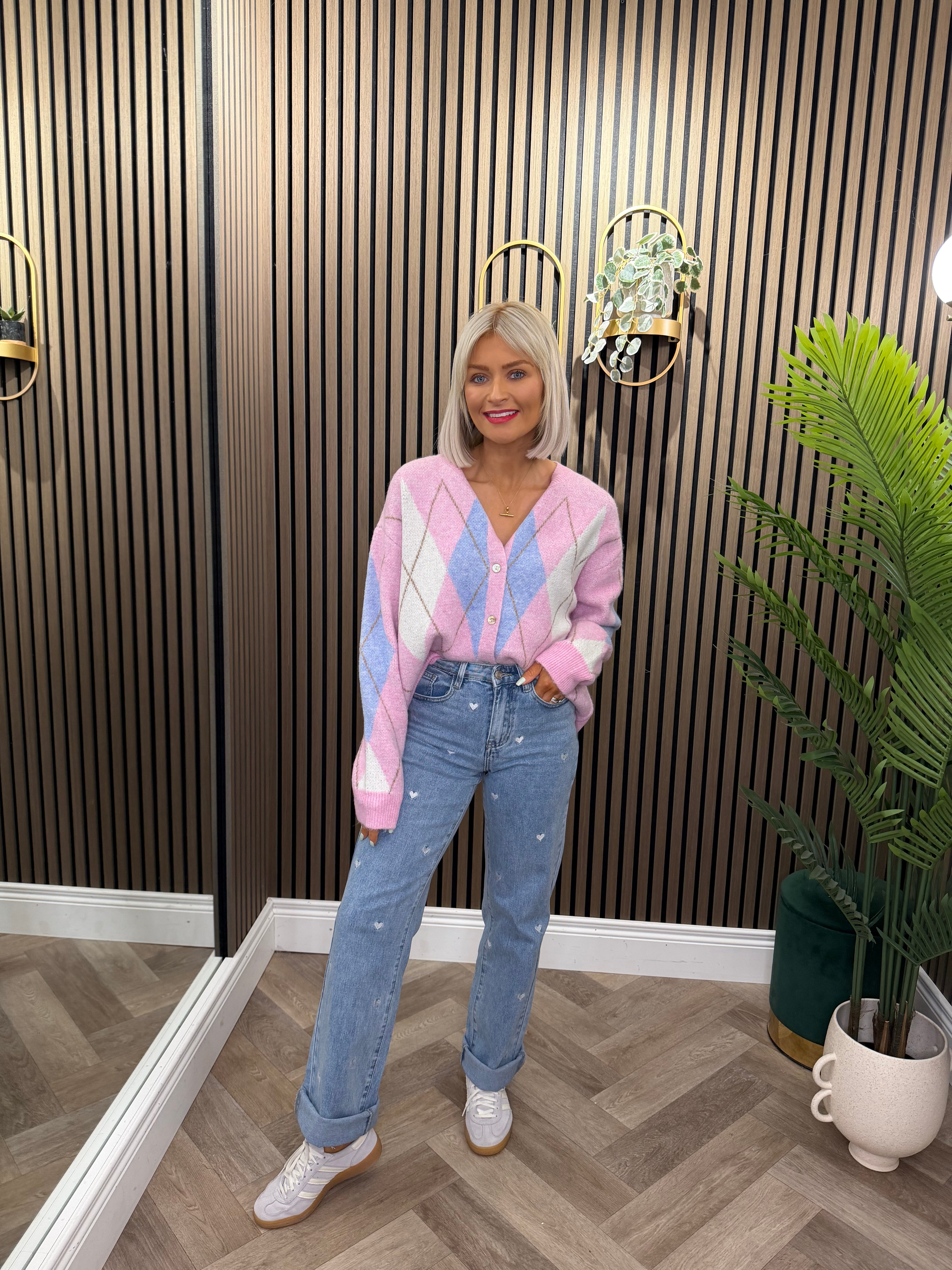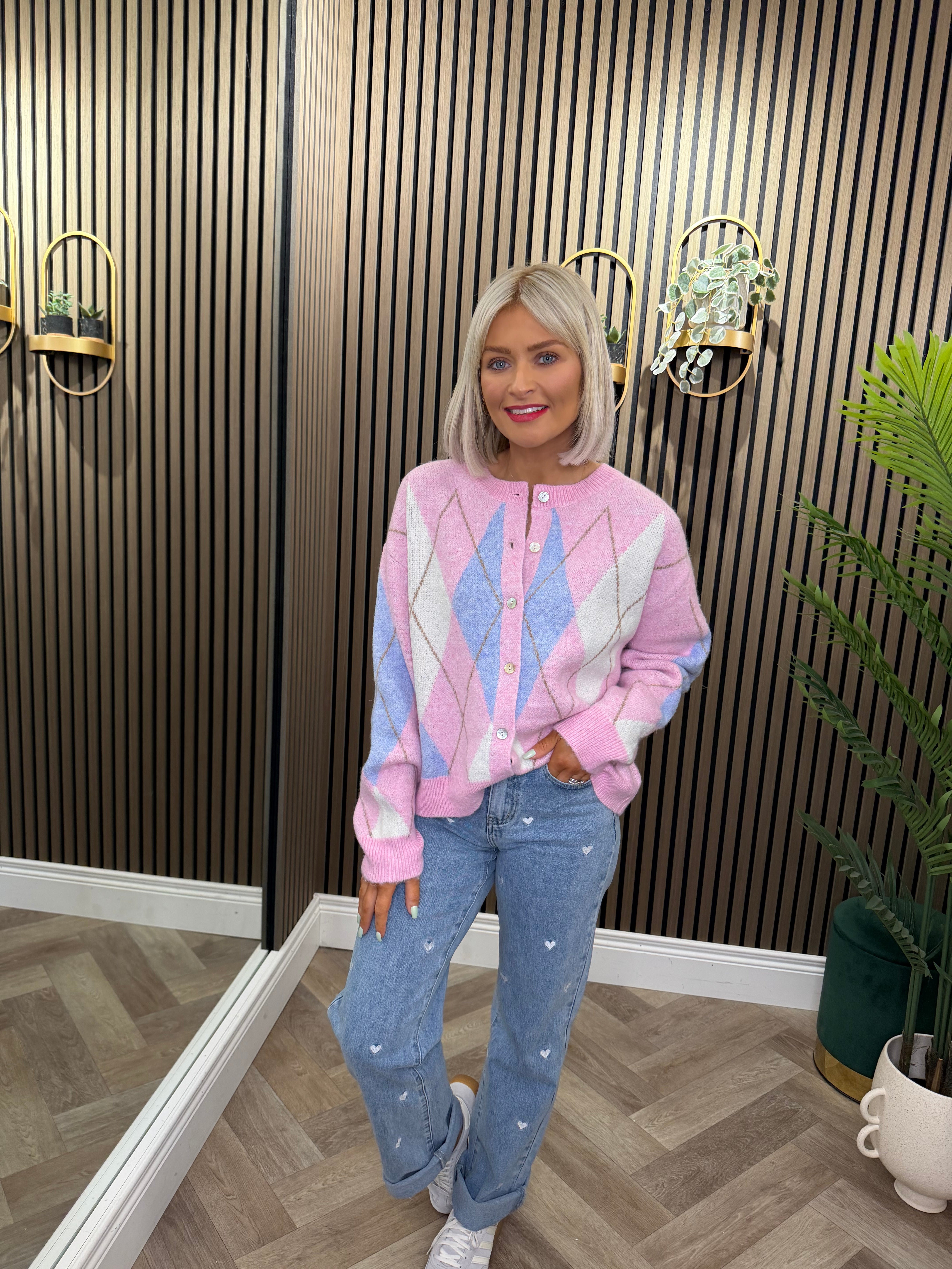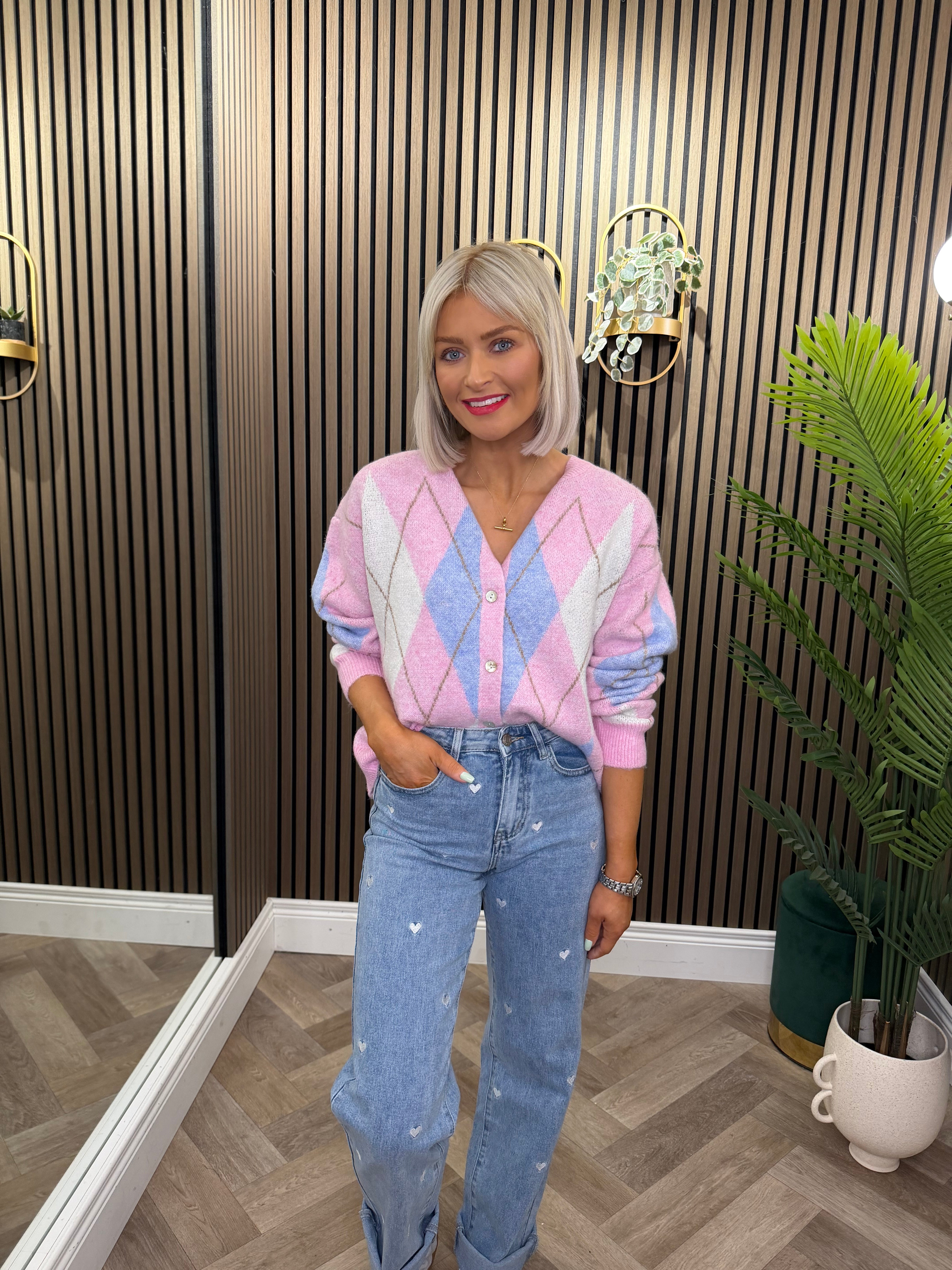 Heidi Cardigan Pink With Blue Diamond