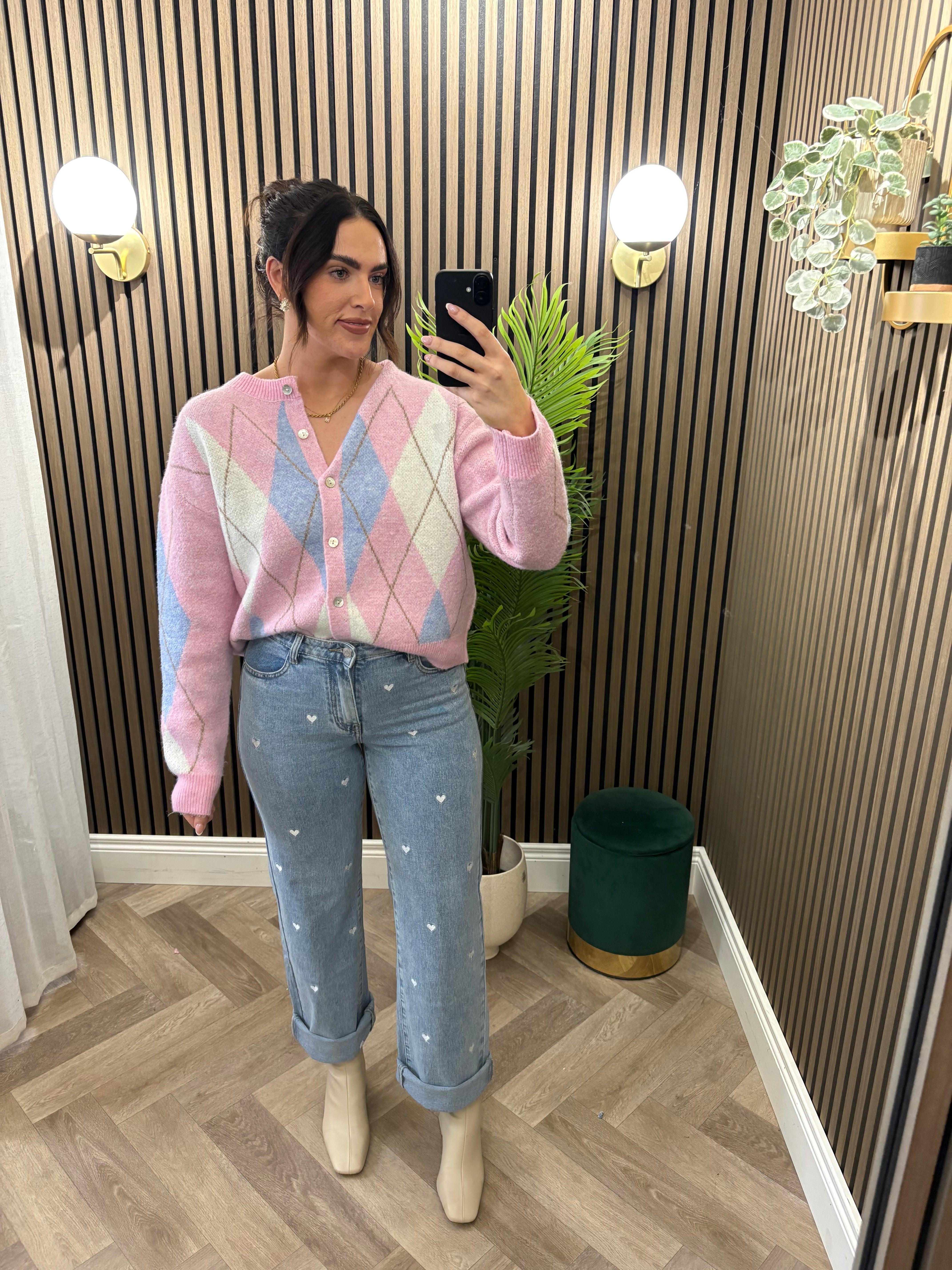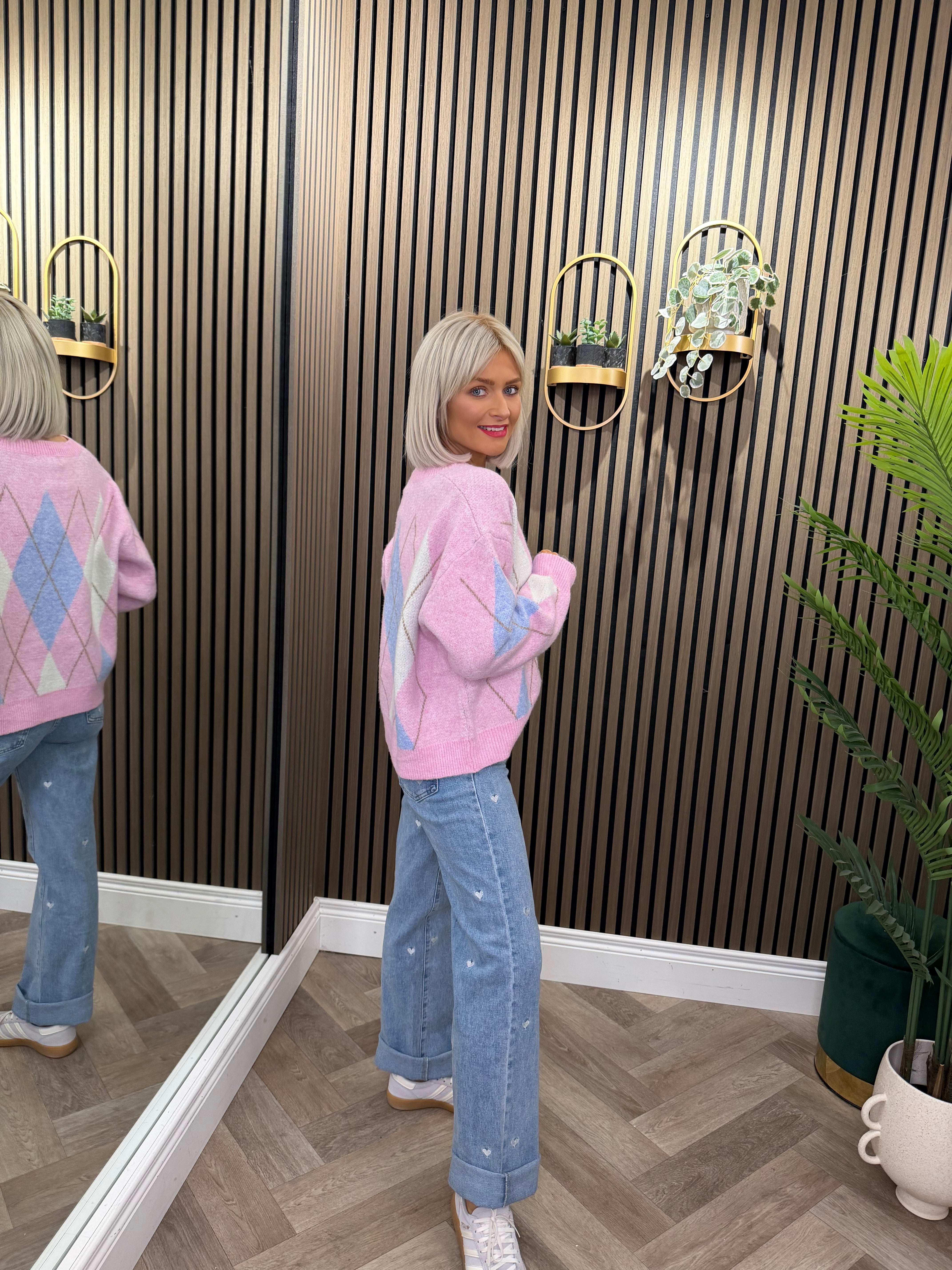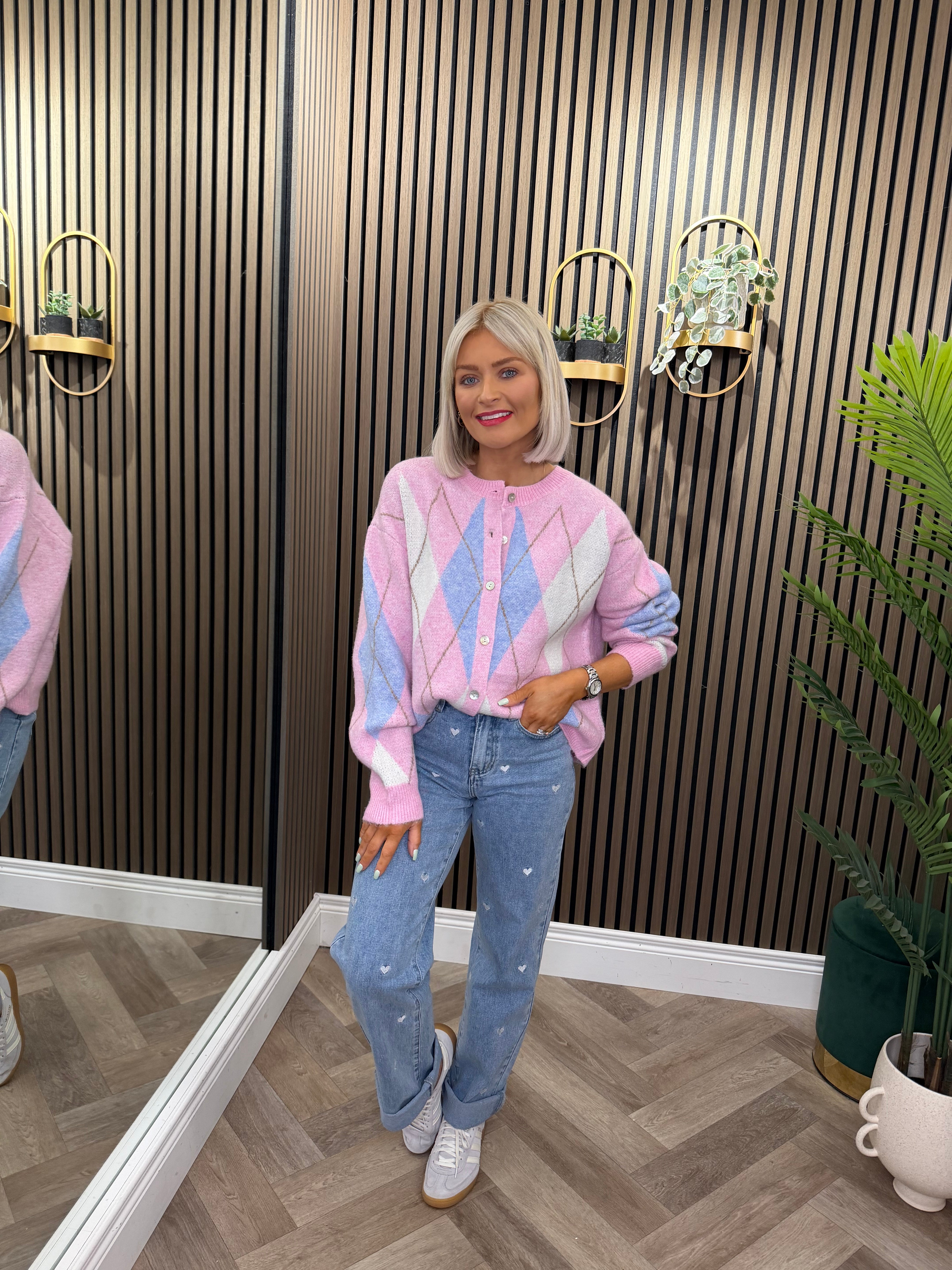 Heidi Cardigan Pink With Blue Diamond