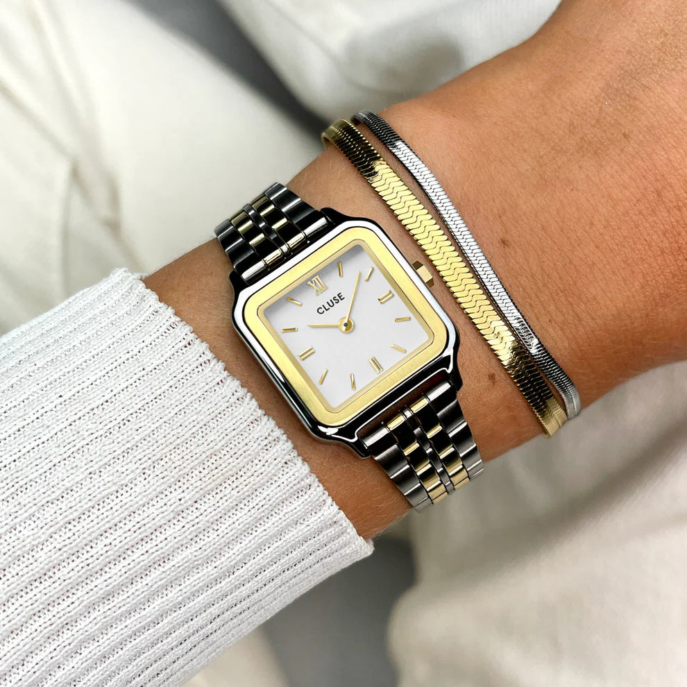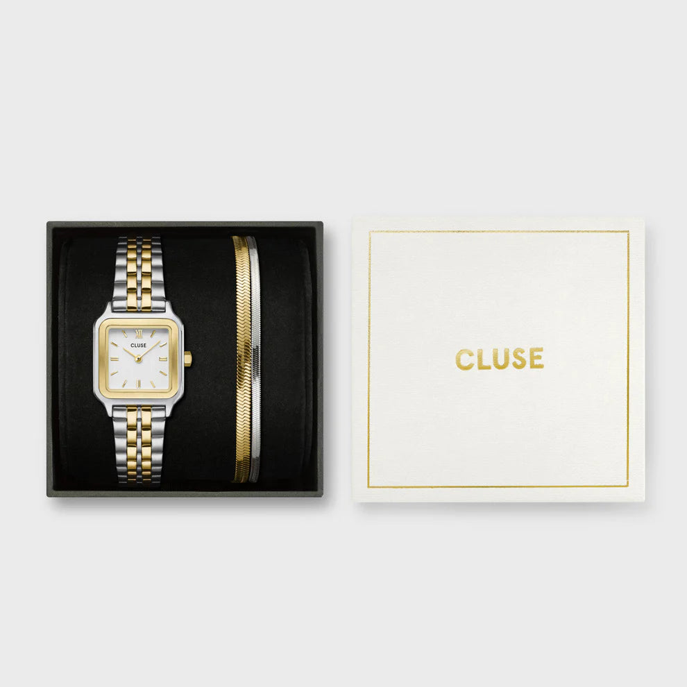 Cluse- Gift Box Gracieuse Petite Watch Steel & Double Snake Bracelet, Two-Tone