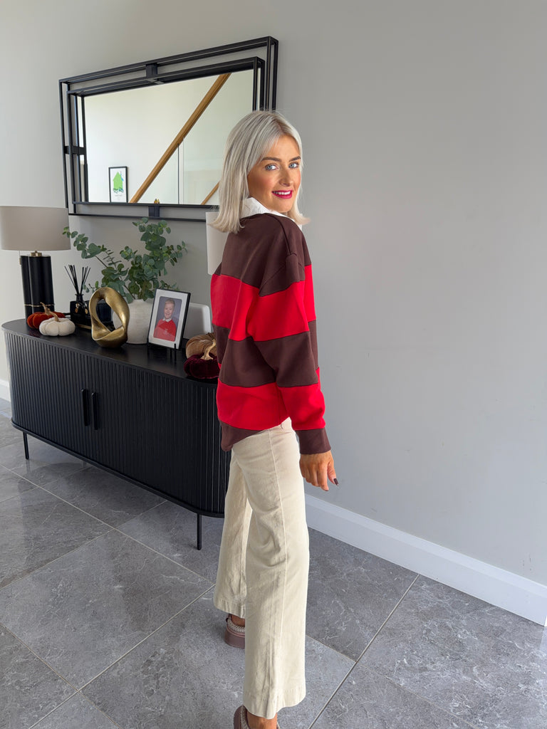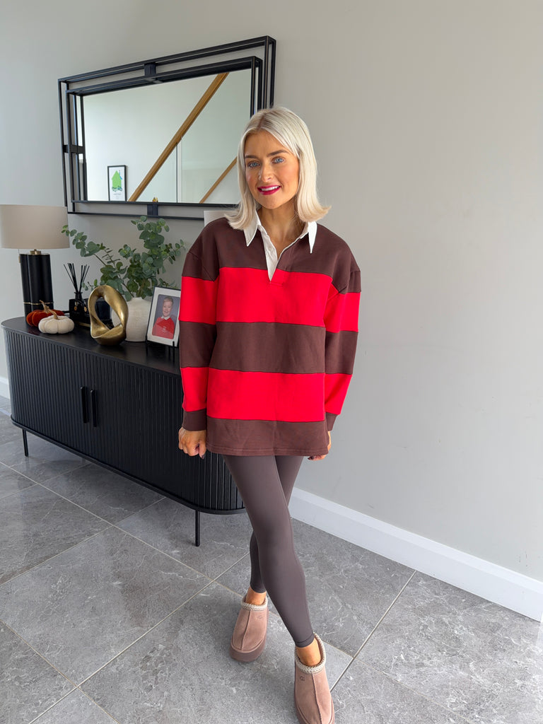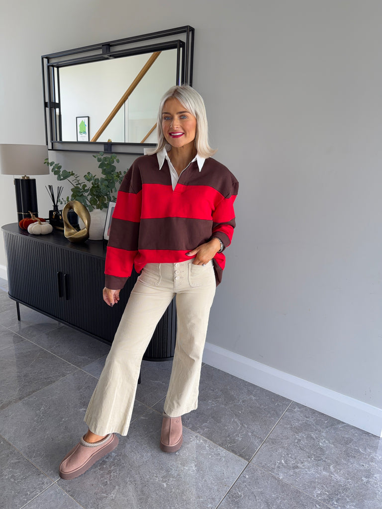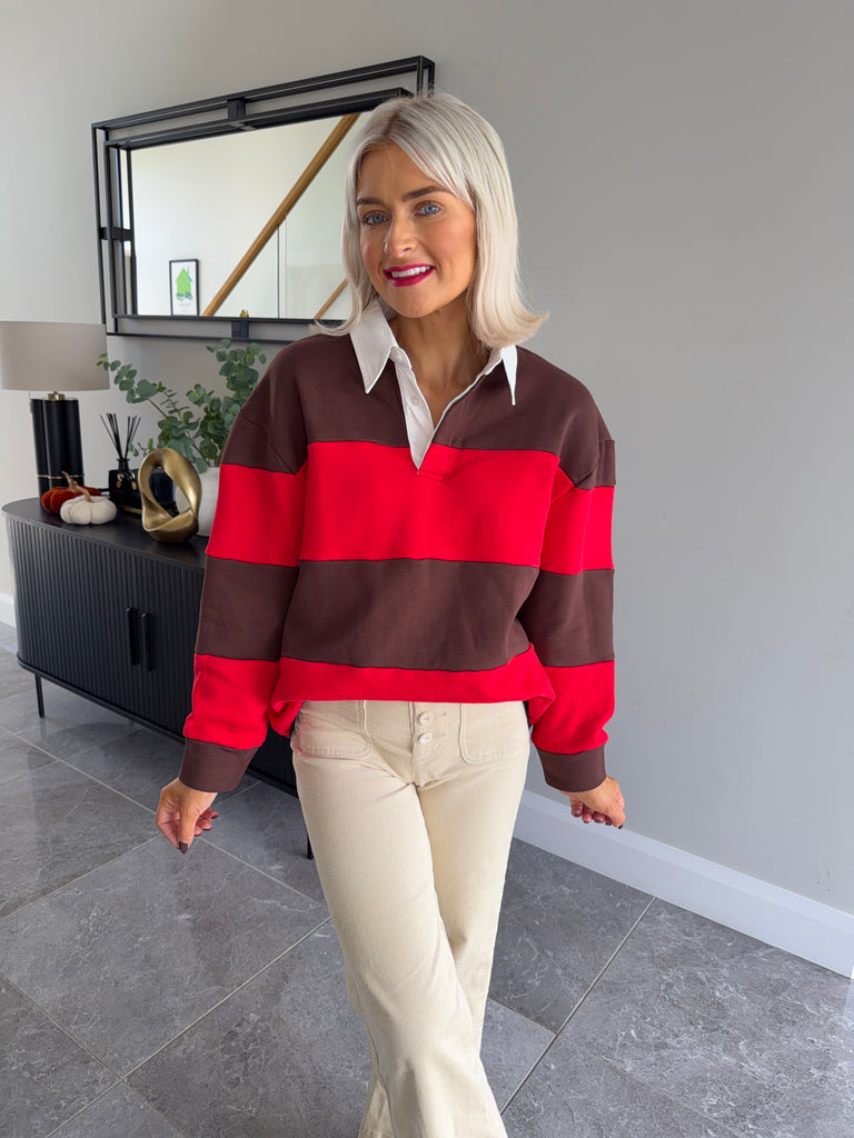 Long sleeve, v neckline, rugby style sweatshirt. Available in more colours.