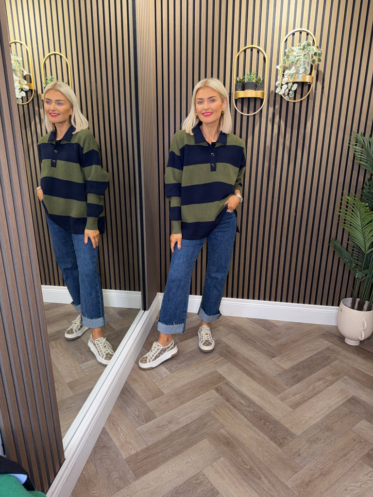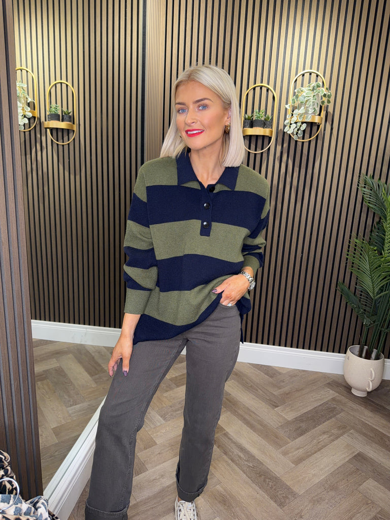 Gillian Knit Jumper Green/Navy